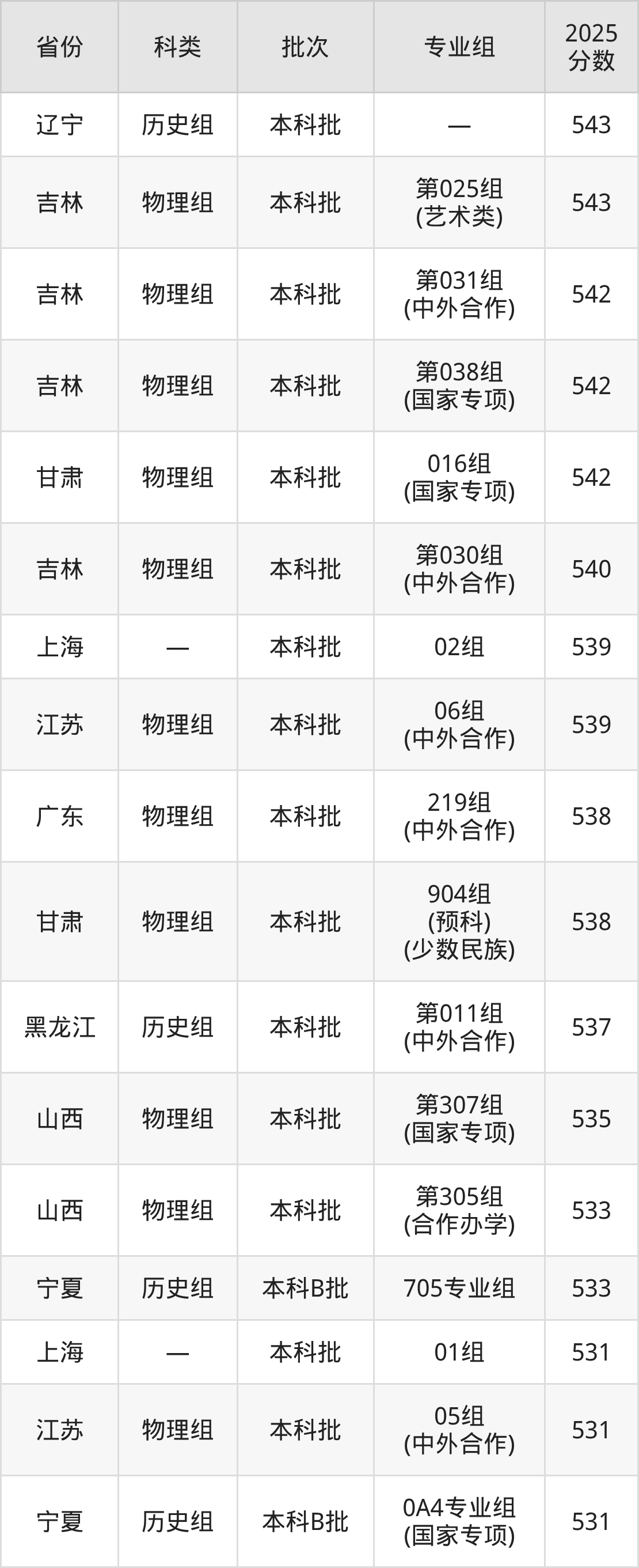 下面是东北师范大学2025年在全国各省的录取分数线一览表,供参考: