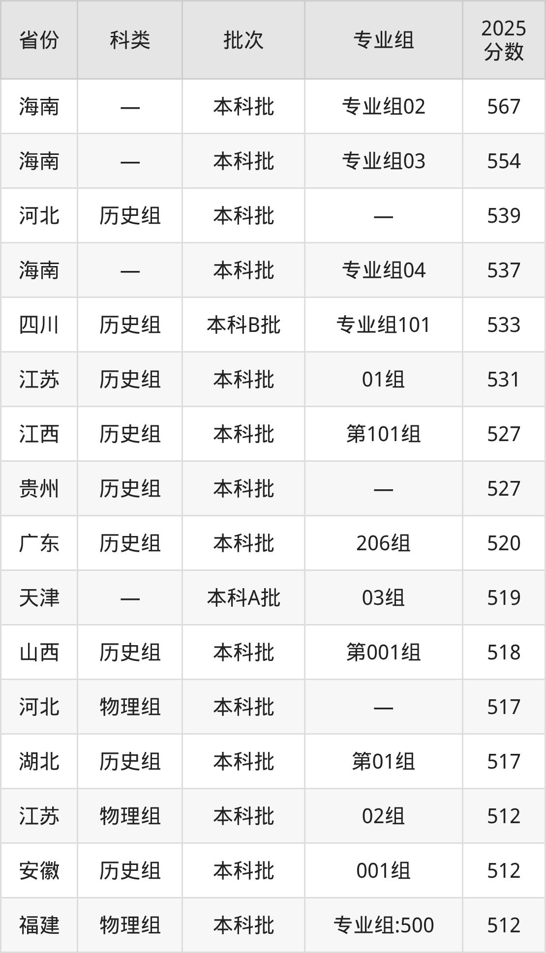 而海南地区考生的分数门槛最高,2025年赣东学院专业组02在海南招生最低分为567分,考生至少要超本科线87分才有可能被录取。