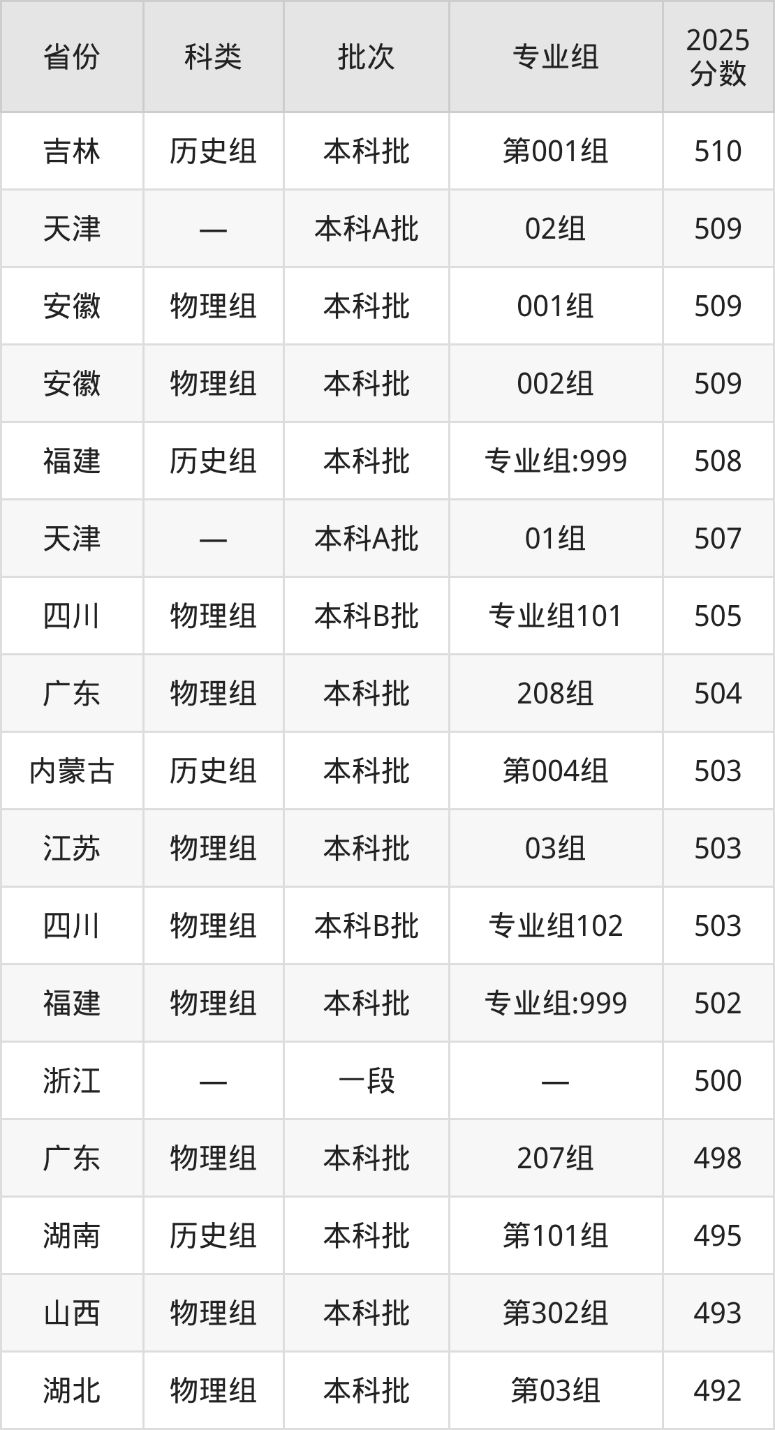 2025年赣东学院在全国普通批次招生的录取分数范围位于416~567分之间,其中省内分数范围为477分~527分,历史组最低分专业组为“第101组”,考生527分即可报考,物理组最低分专业组为“第501组”,考生477分即可报考。