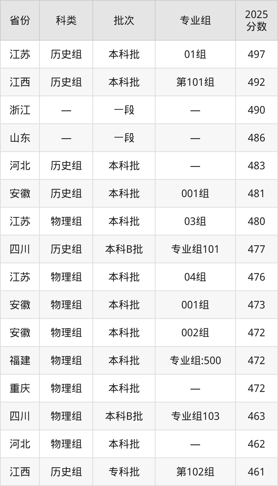 而江苏地区历史组考生的分数门槛最高,2025年温州商学院01组在江苏招生最低分为497分,考生至少要超本科线15分才有可能被录取。