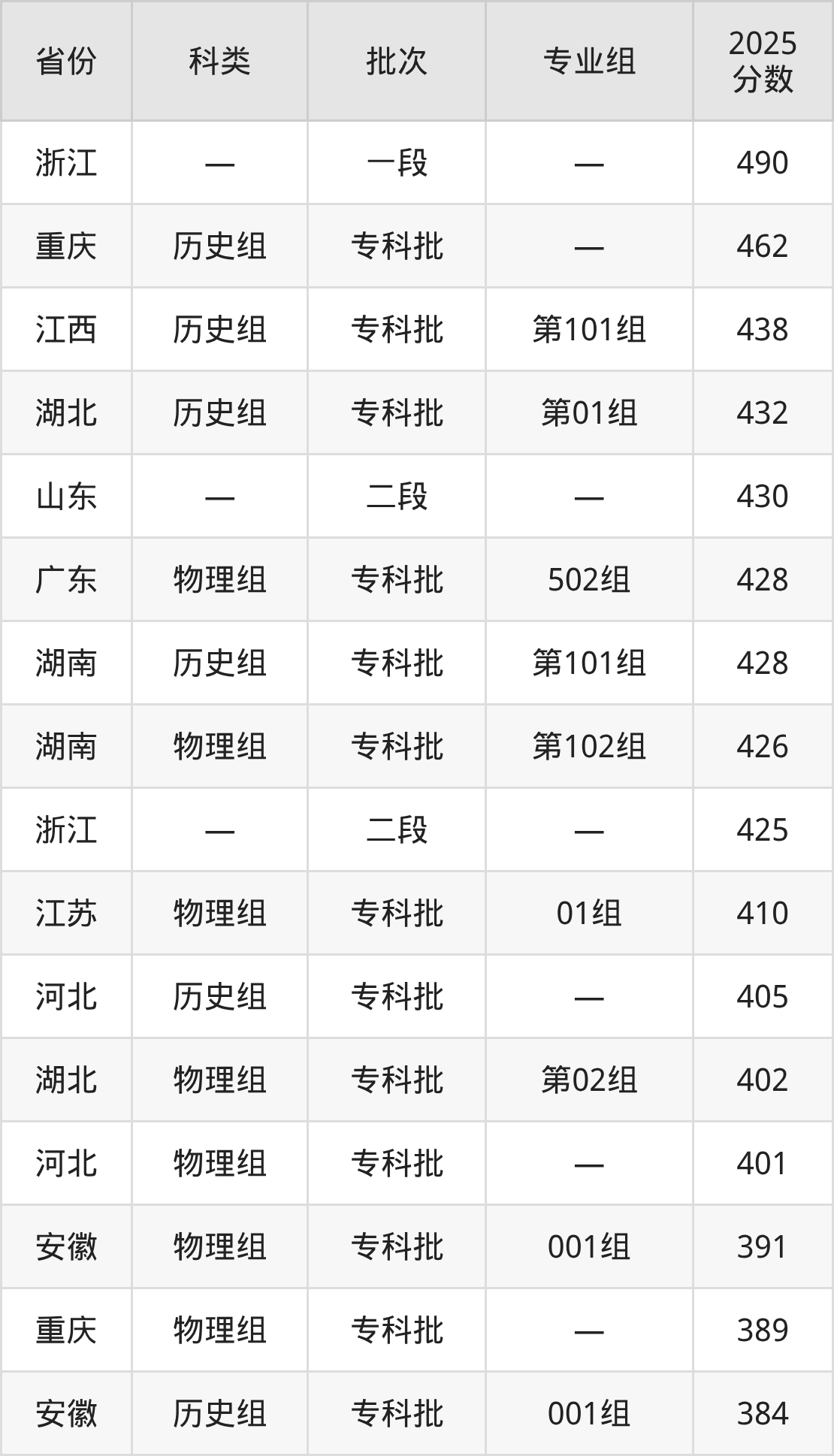 而浙江地区考生的分数门槛最高,2025年天津城市职业学院在浙江招生最低分为490分,考生至少要超一段线0分才有可能被录取。