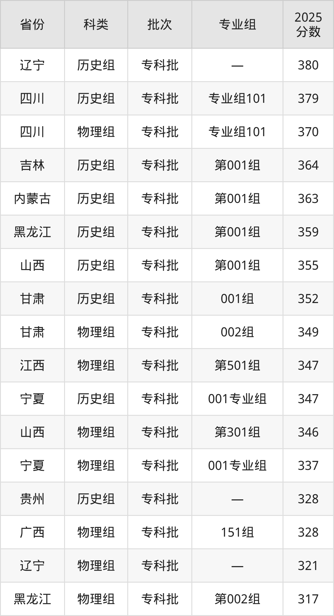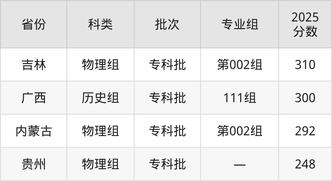 下面是天津城市职业学院2025年在全国各省的录取分数线一览表,供参考: