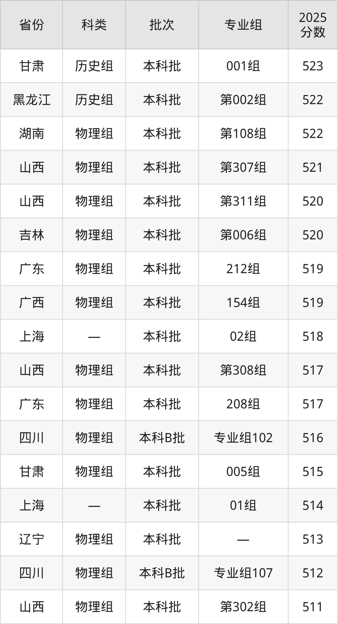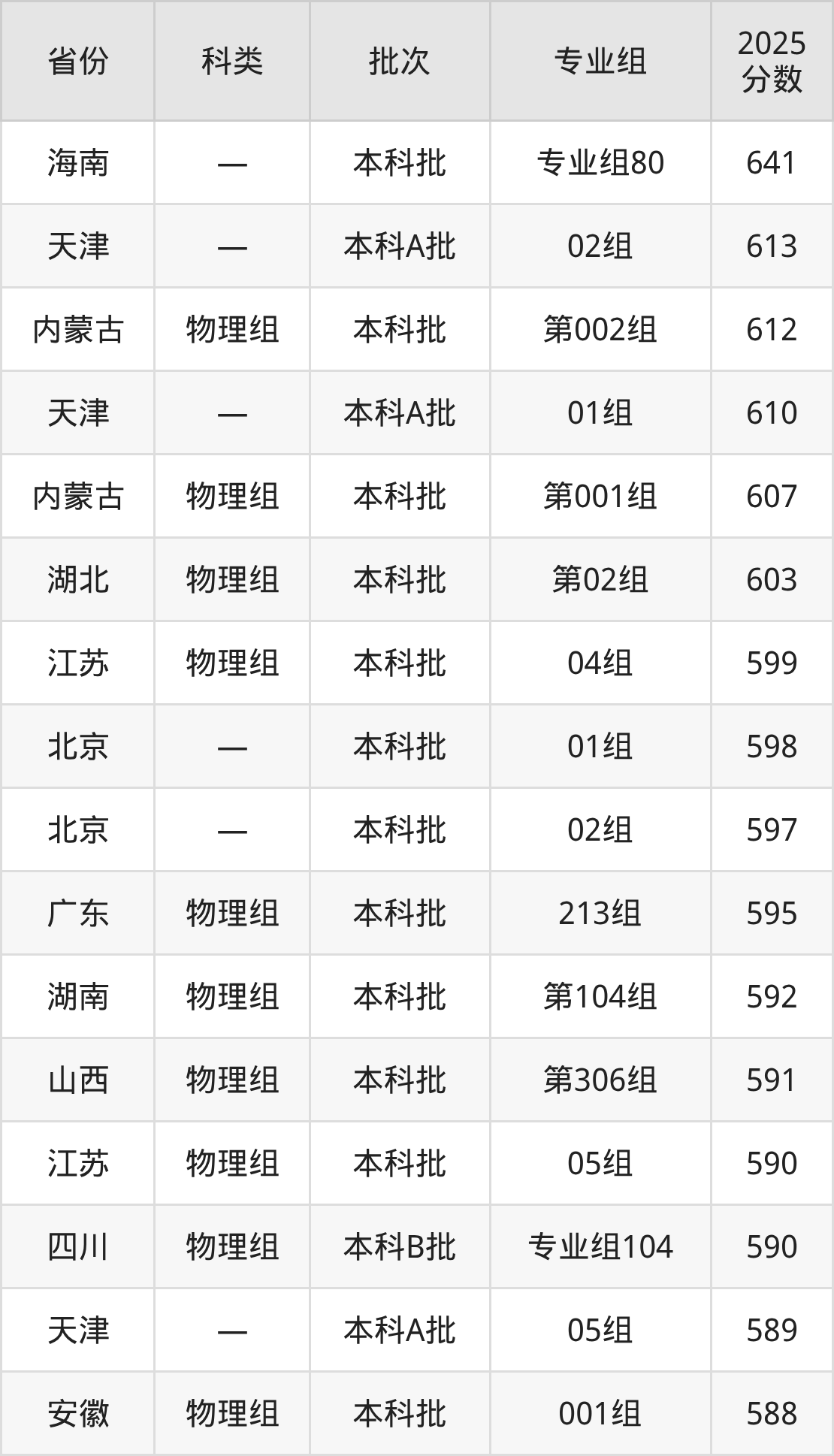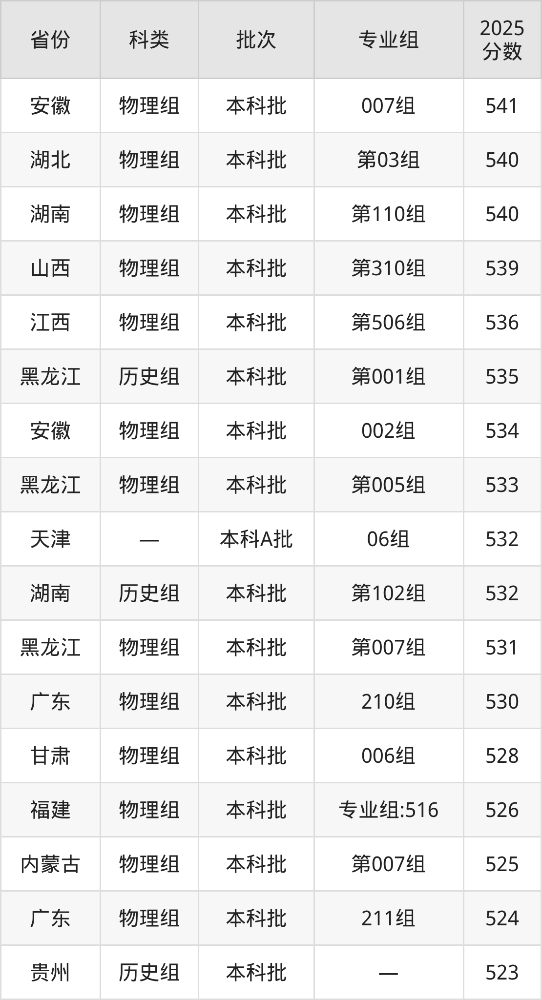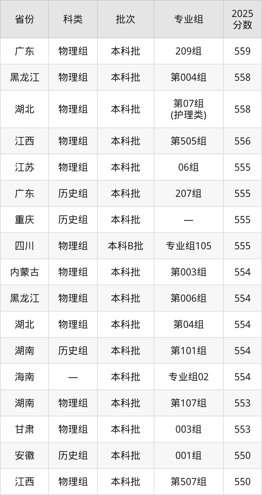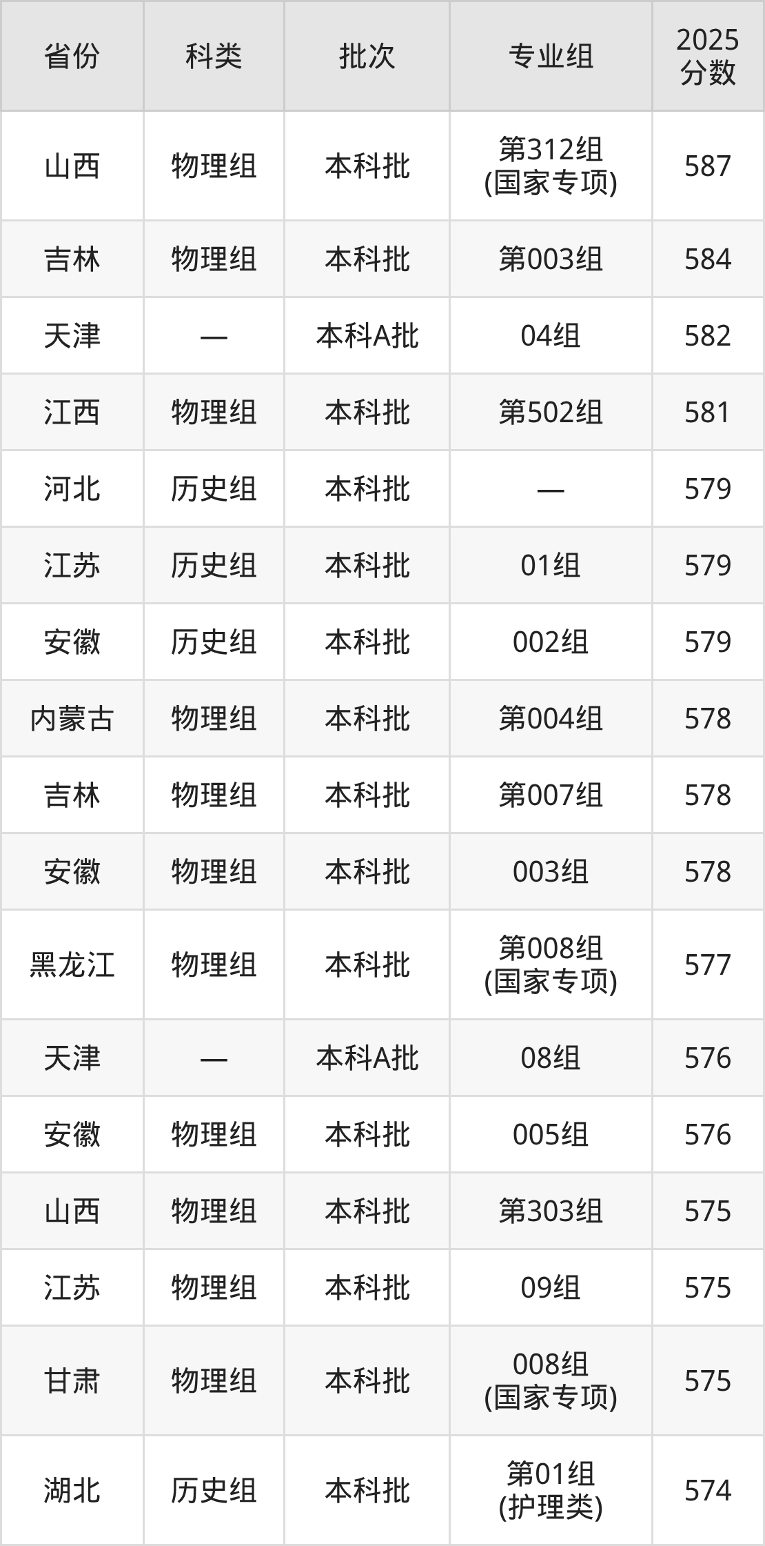 2025年哈尔滨医科大学在全国普通批次招生的录取分数范围位于429~641分之间,其中省内分数范围为522分~577分,物理组最低分专业组为“第007组”,考生531分即可报考,历史组最低分专业组为“第002组”,考生522分即可报考。