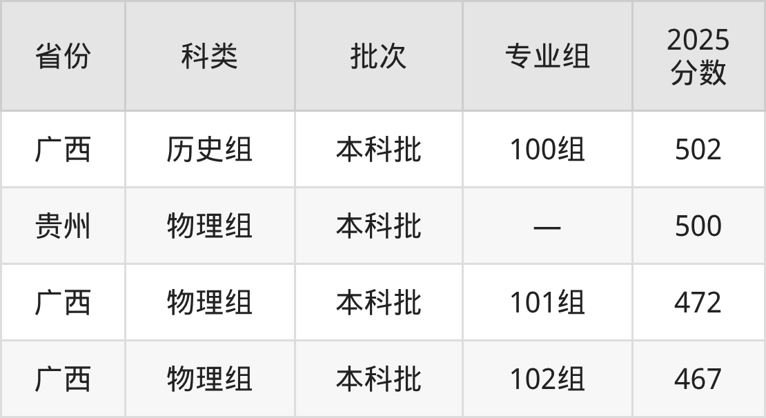 2025年湖北警官学院在全国普通批次招生的录取分数范围位于467~595分之间,其中省内分数范围为522分~546分,历史组最低分专业组为“第07组”,考生546分即可报考,物理组最低分专业组为“第08组”,考生522分即可报考。