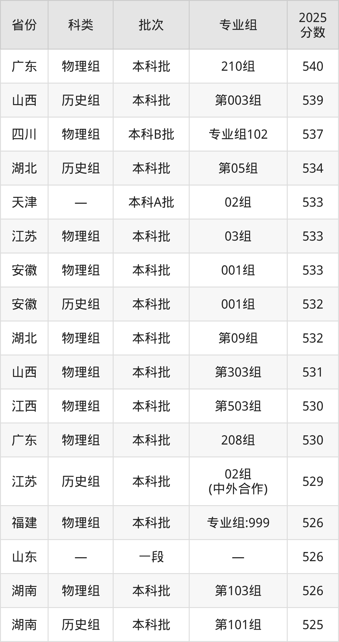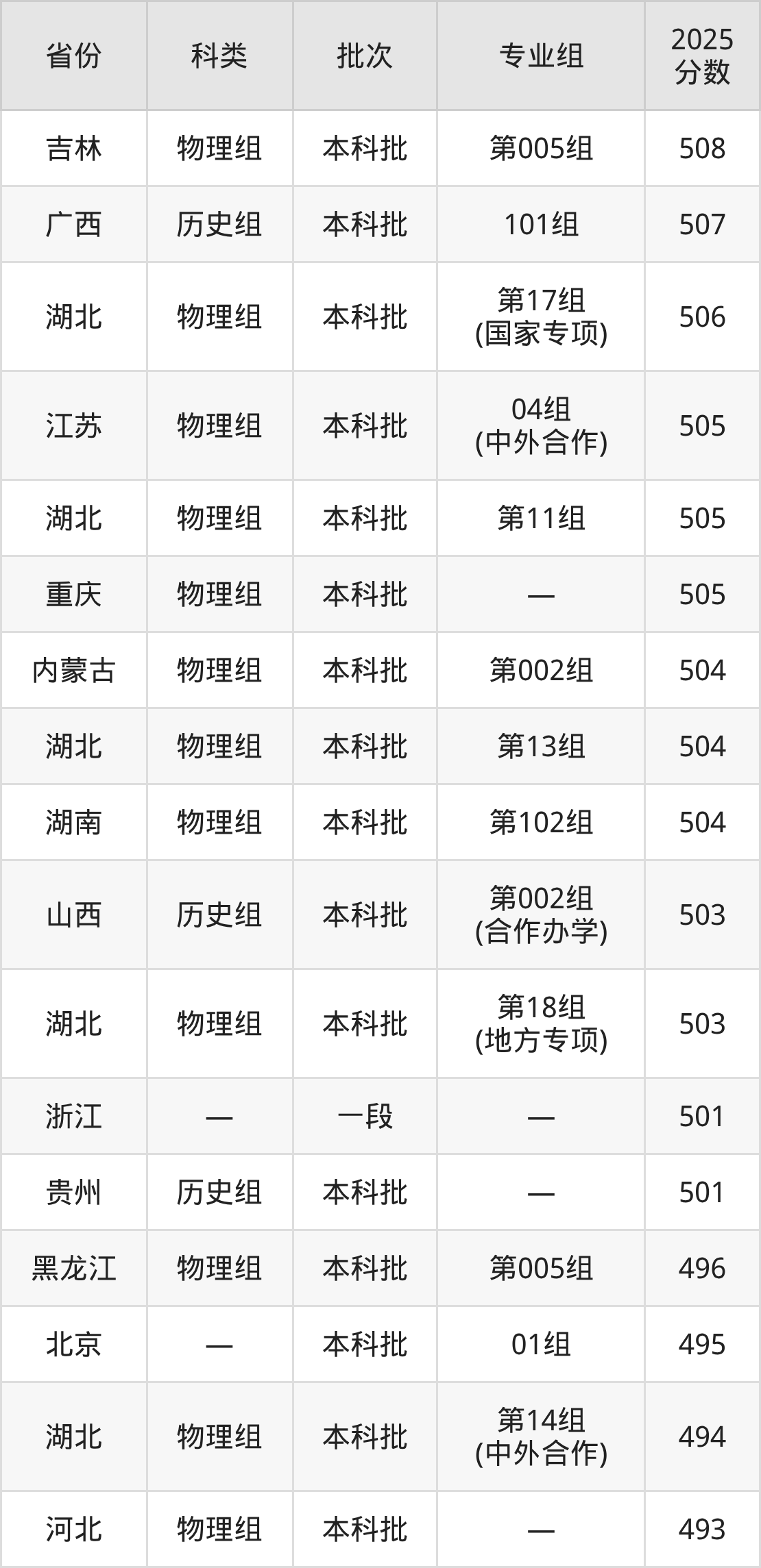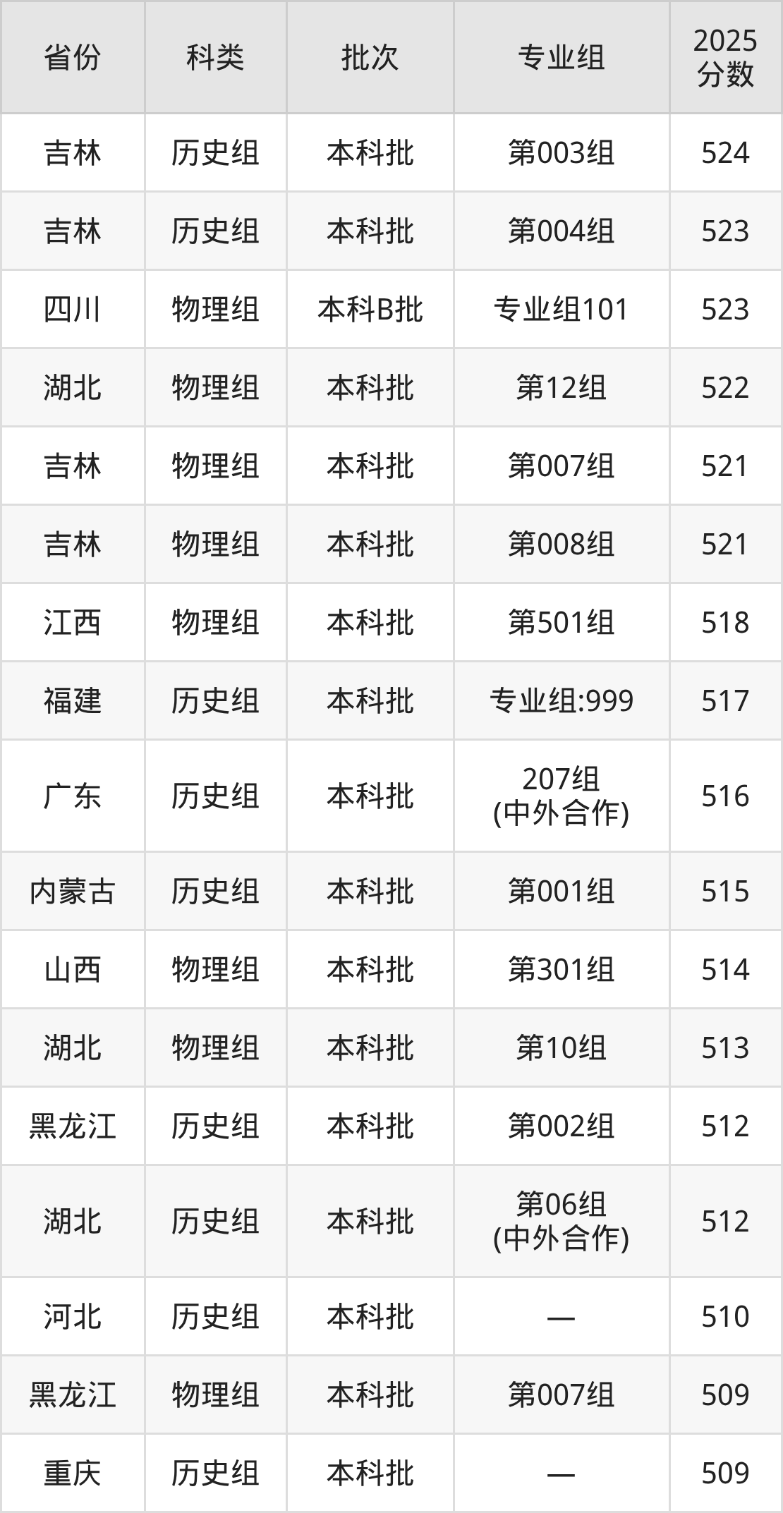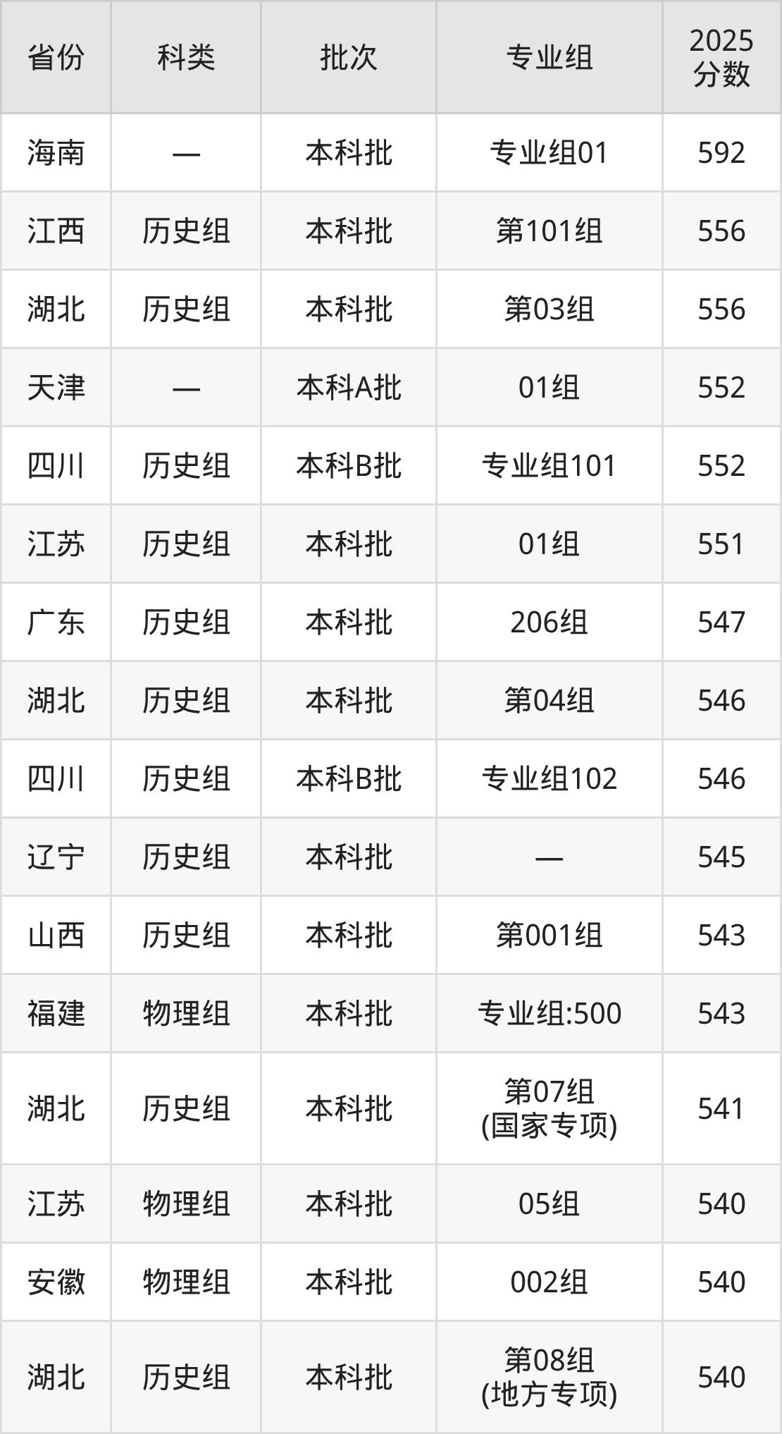 而海南地区考生的分数门槛最高,2025年湖北经济学院专业组01在海南招生最低分为592分,考生至少要超本科线112分才有可能被录取。