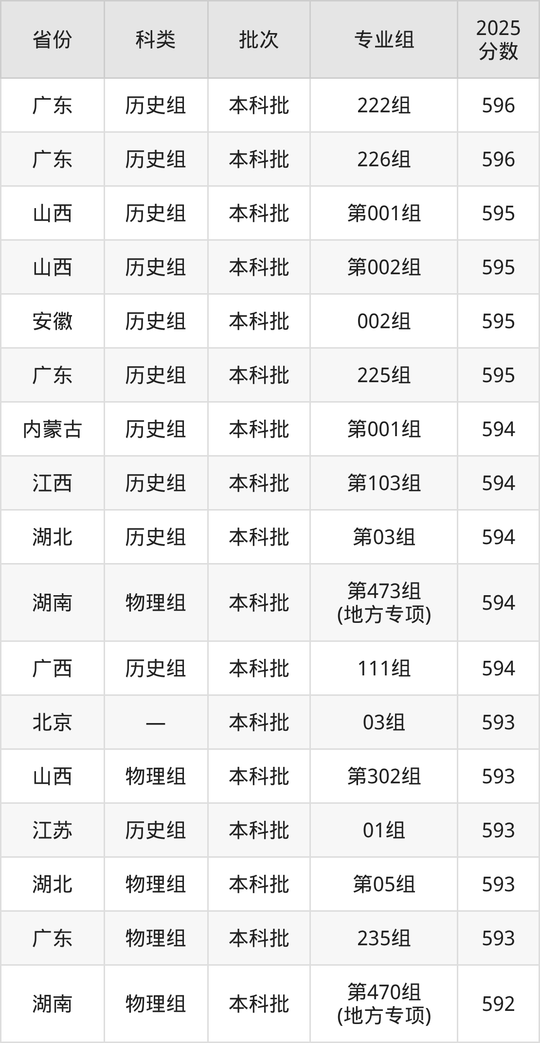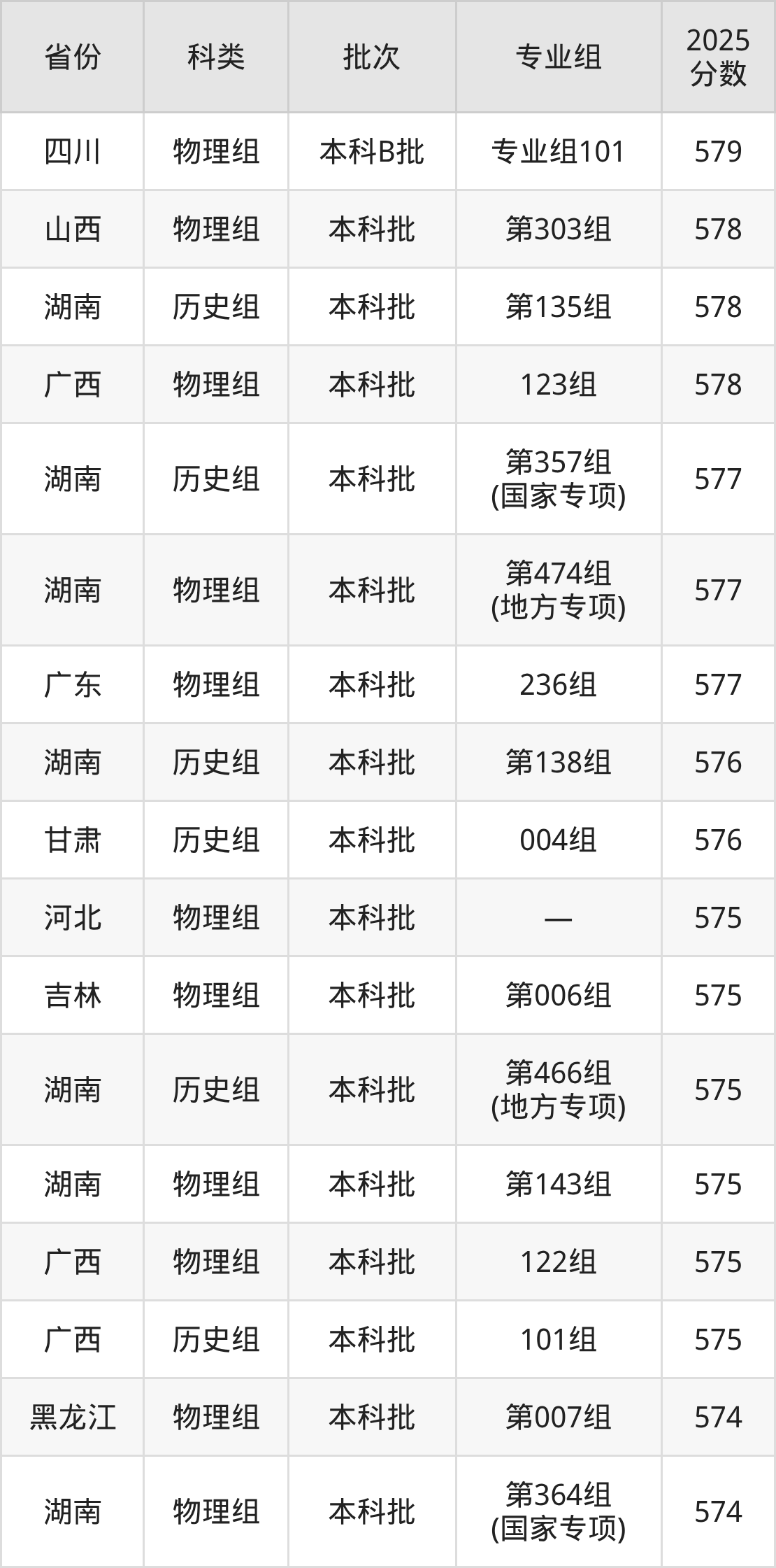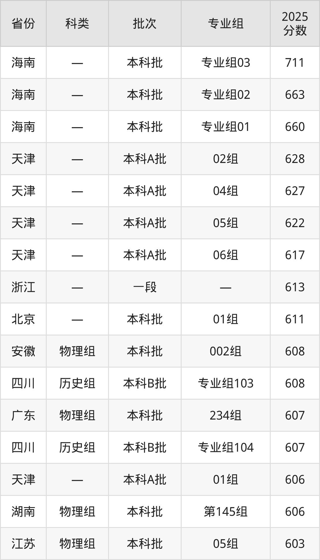 而海南地区考生的分数门槛最高,2025年湖南师范大学专业组03在海南招生最低分为711分,考生至少要超本科线231分才有可能被录取。