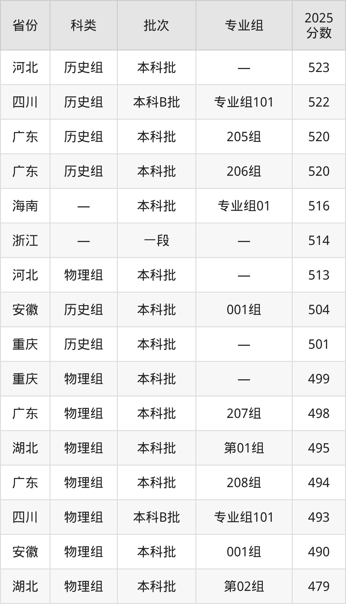 而河北地区历史组考生的分数门槛最高,2025年信阳农林学院在河北招生最低分为523分,考生至少要超本科线46分才有可能被录取。