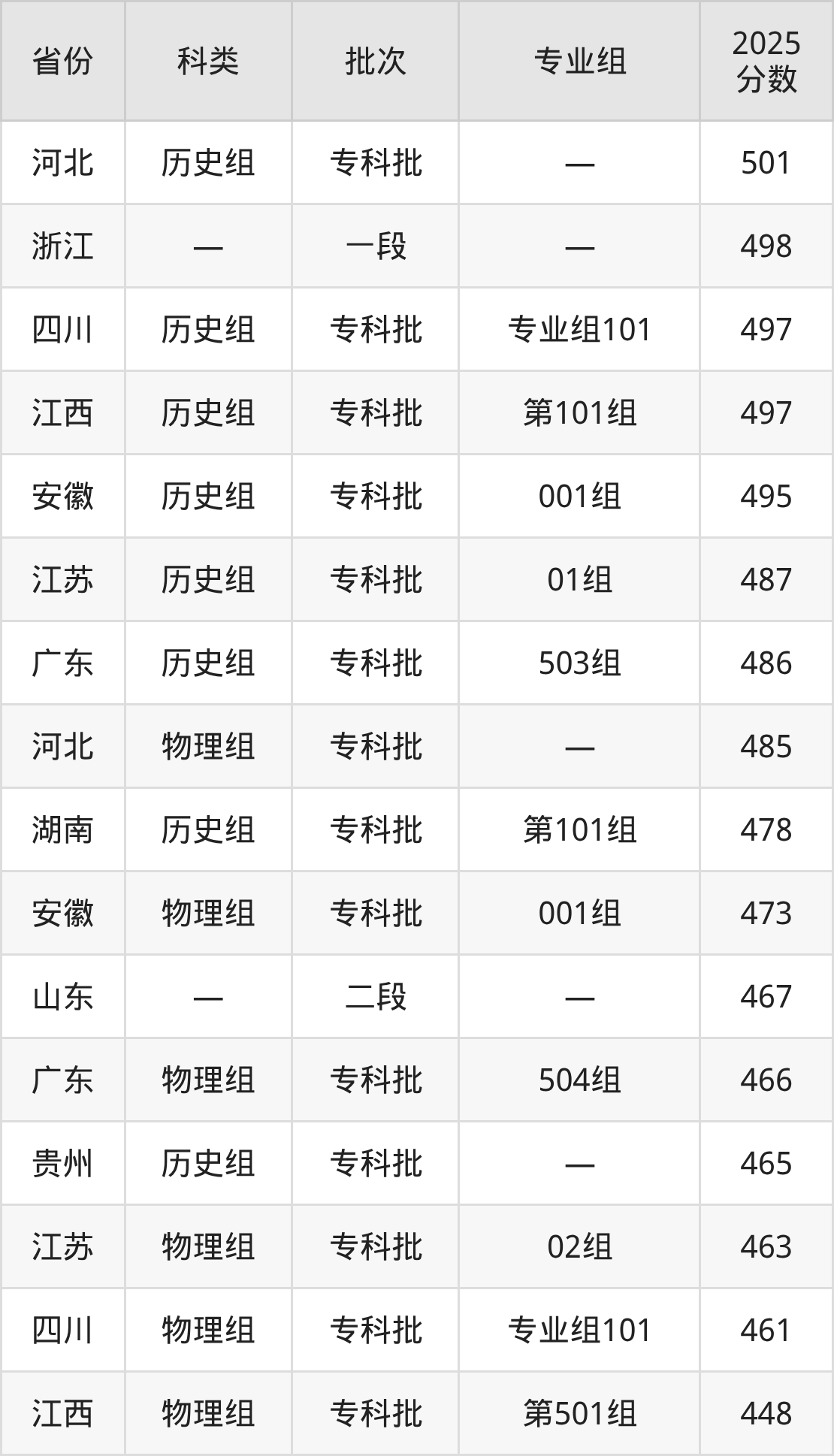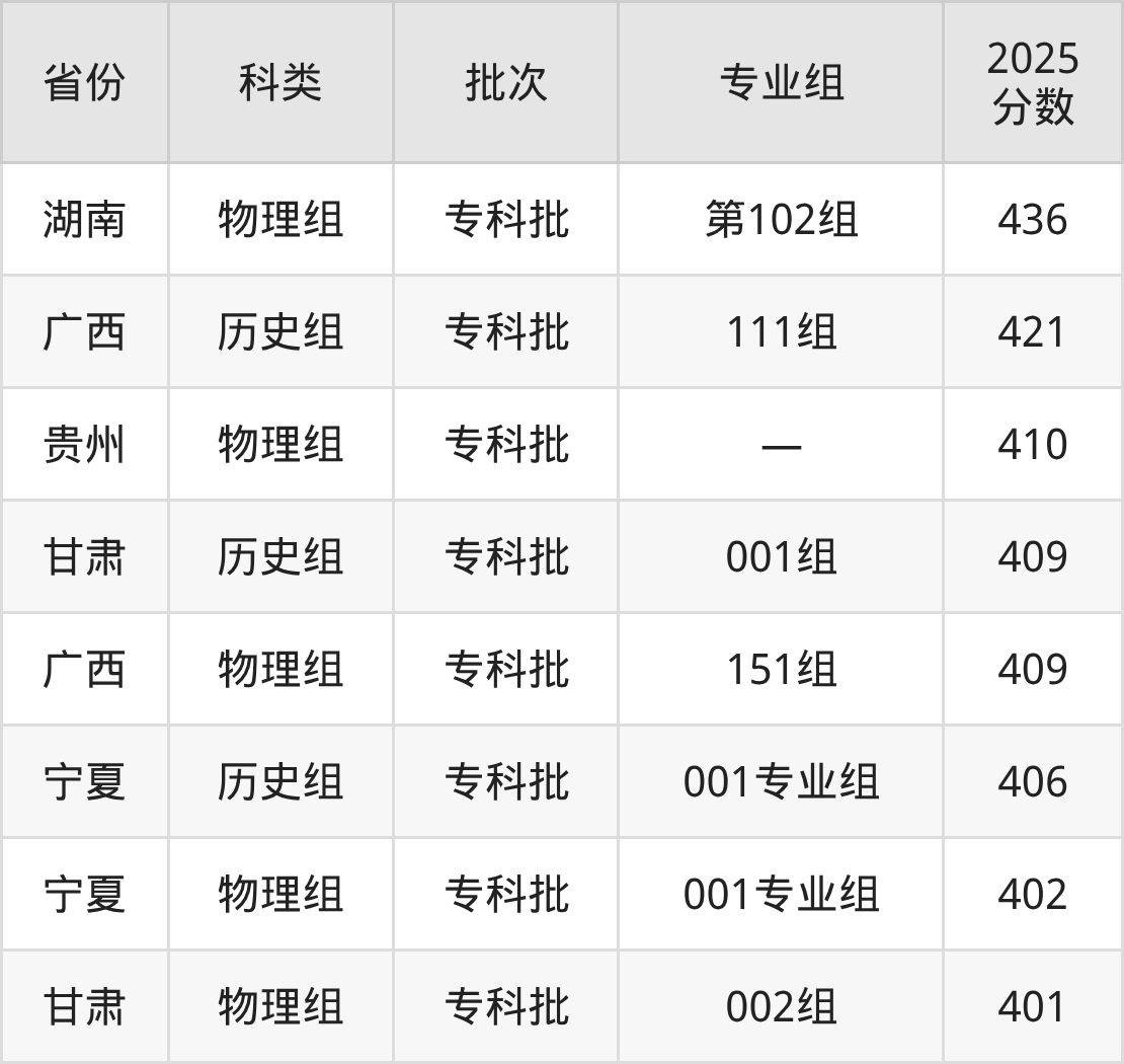 而河北地区历史组考生的分数门槛最高,2025年浙江金融职业学院在河北招生最低分为501分,考生至少要超专科线301分才有可能被录取。