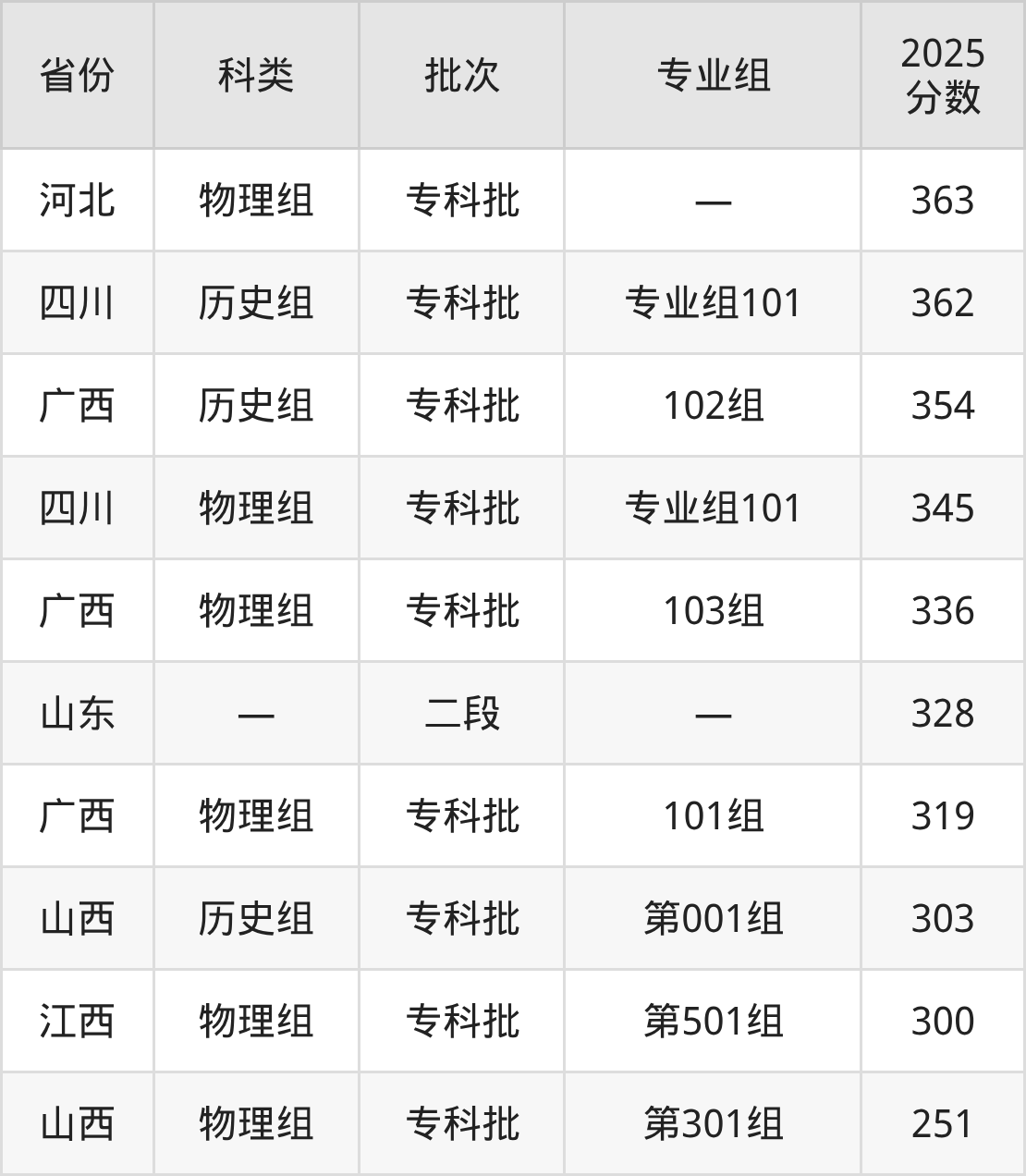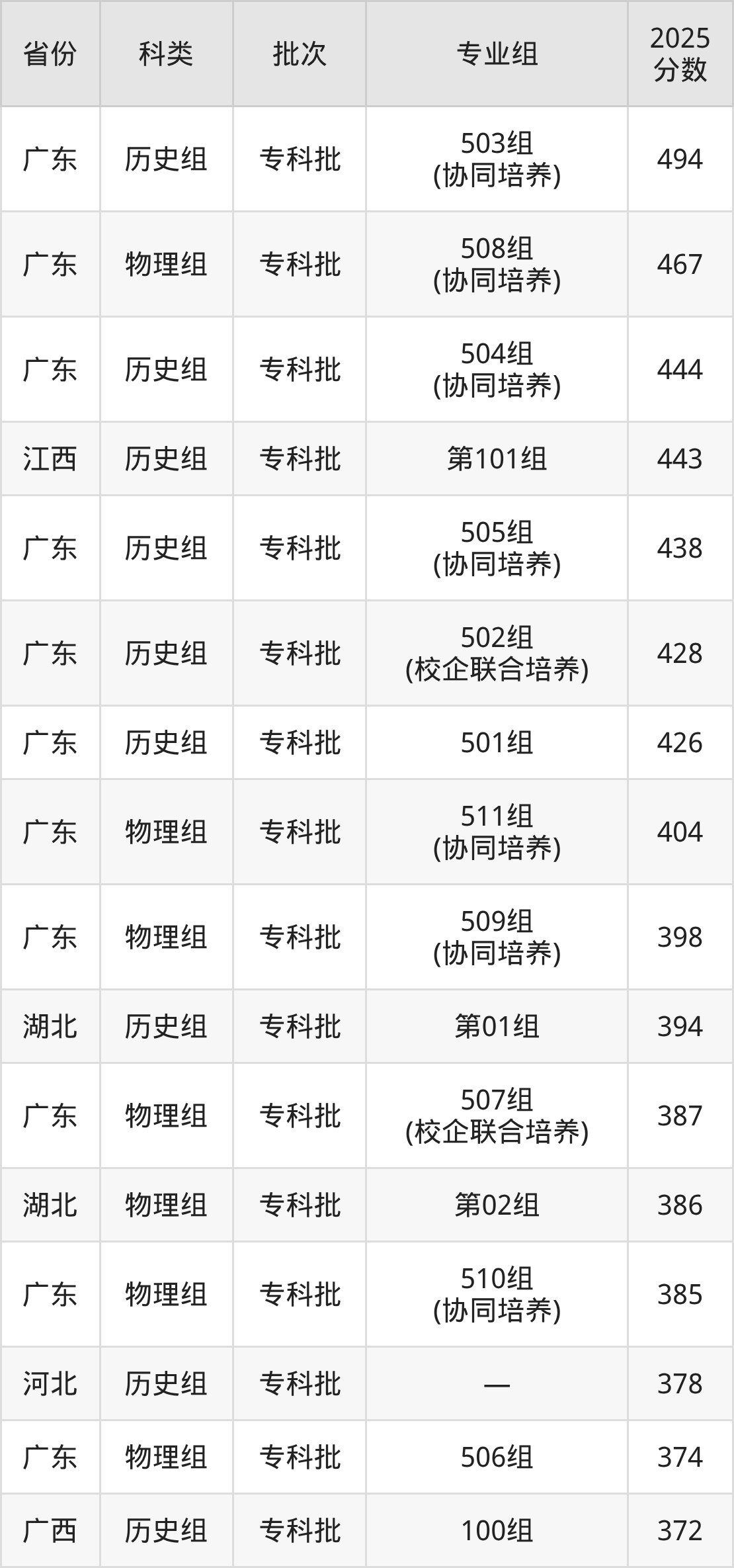 而江西地区历史组考生的分数门槛最高,2025年广东省外语艺术职业学院第101组在江西招生最低分为443分,考生至少要超专科线153分才有可能被录取。