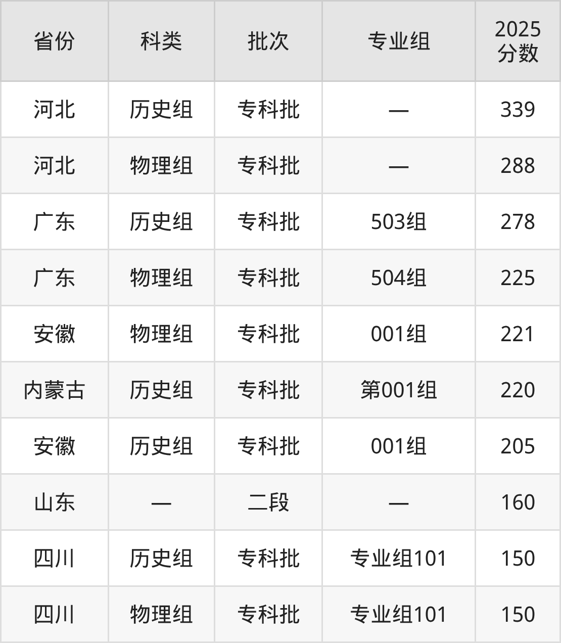 而河北地区历史组考生的分数门槛最高,2025年郑州信息工程职业学院在河北招生最低分为339分,考生至少要超专科线139分才有可能被录取。