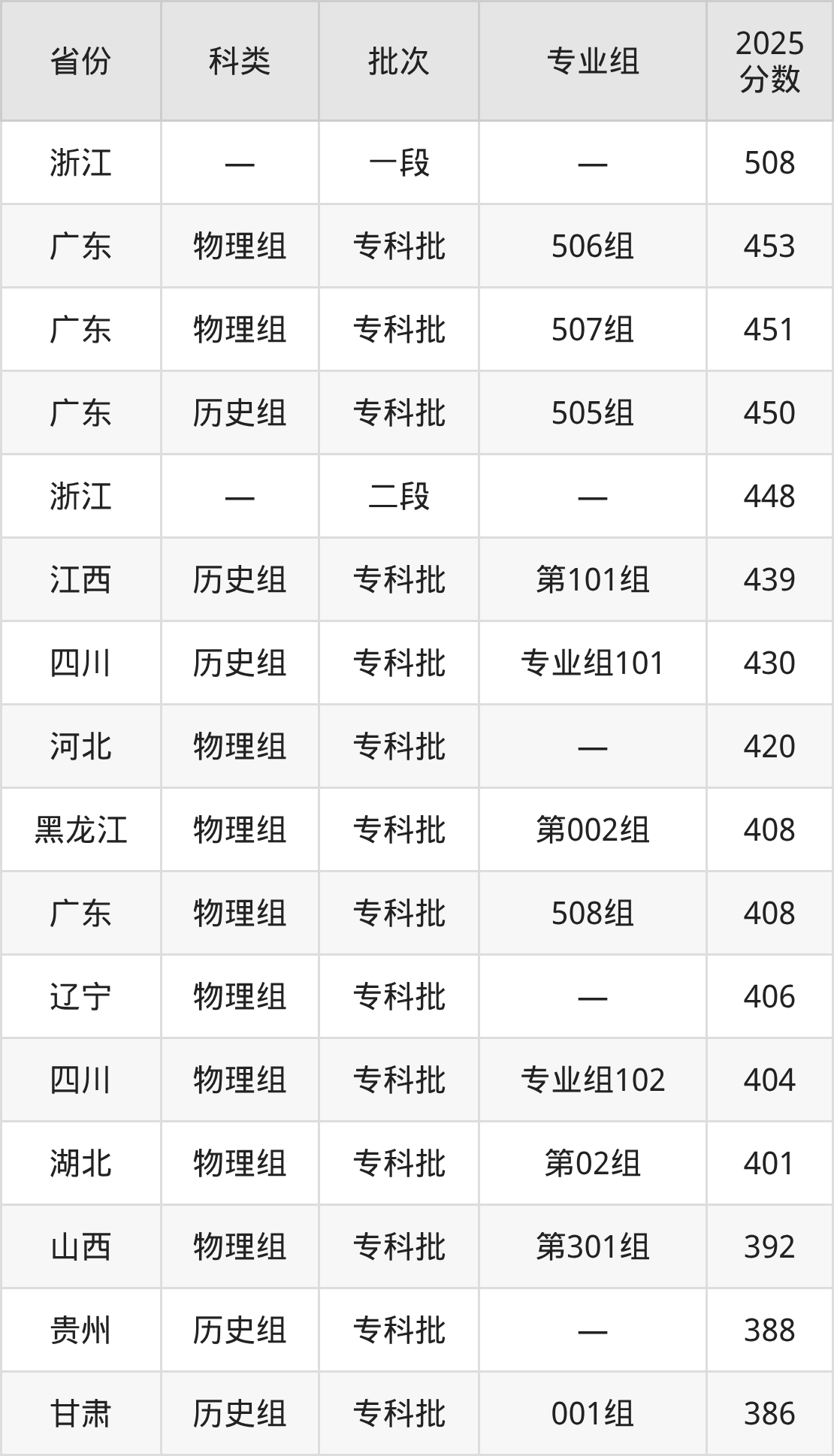 而浙江地区考生的分数门槛最高,2025年昆明卫生职业学院在浙江招生最低分为508分,考生至少要超一段线18分才有可能被录取。