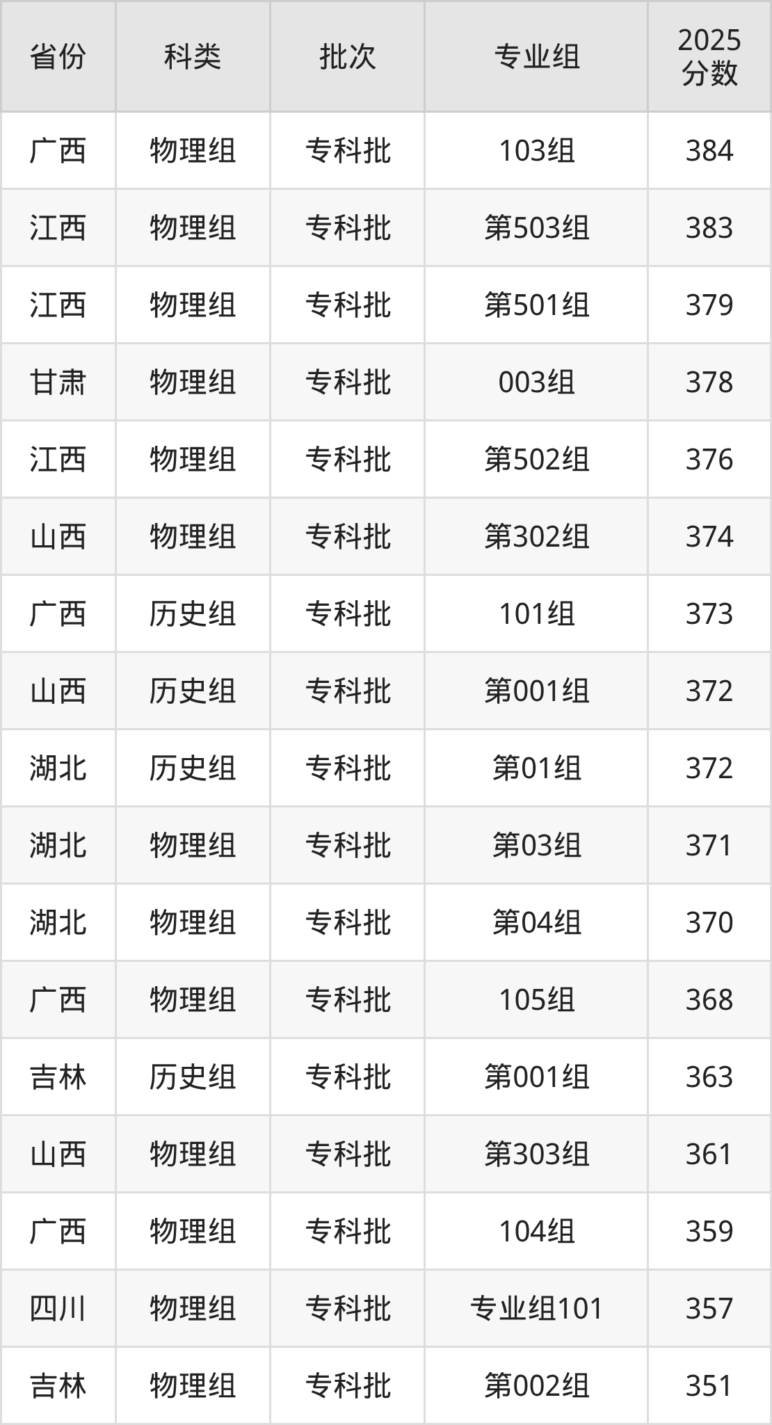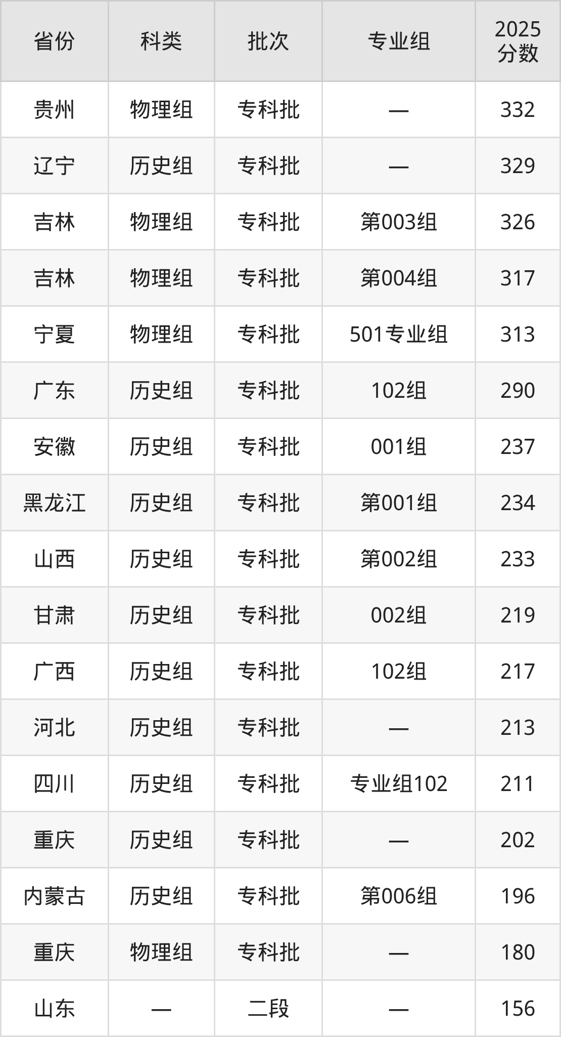 下面是昆明卫生职业学院2025年在全国各省的录取分数线一览表,供参考: