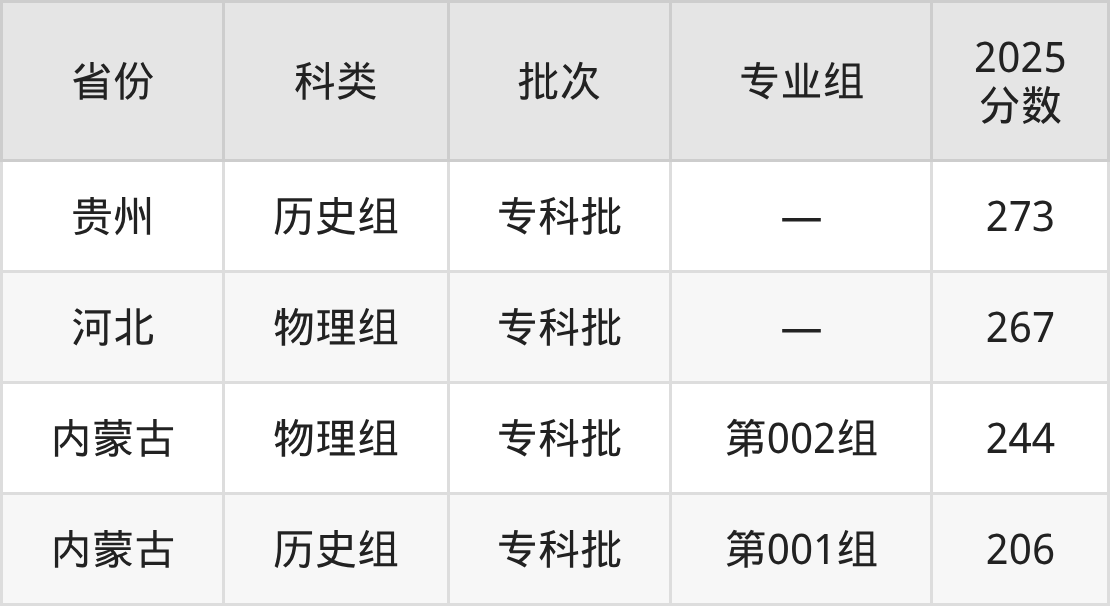 广西生态工程职业技术学院在壮族自治区外招生的最低分为206分,其中内蒙古地区历史组考生上广西生态工程职业技术学院的分数门槛最低,考生成绩超专科线46分(206分)可上。其次是河北物理组考生,上广西生态工程职业技术学院至少要超专科线67分(267分)。