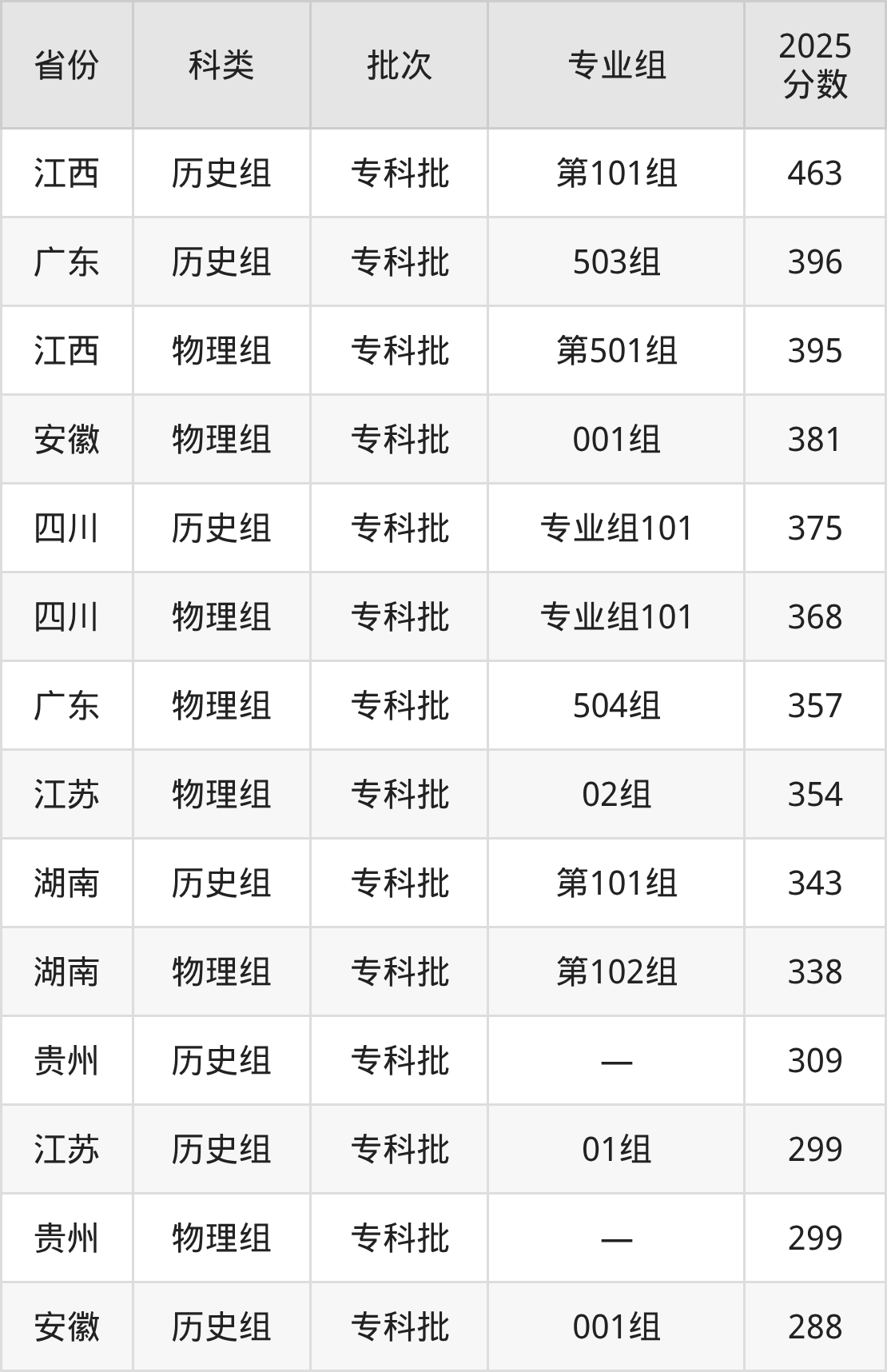 而江西地区历史组考生的分数门槛最高,2025年益阳职业技术学院第101组在江西招生最低分为463分,考生至少要超专科线173分才有可能被录取。