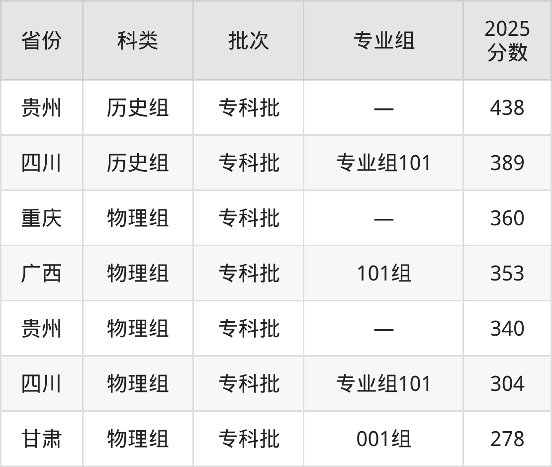 而贵州地区历史组考生的分数门槛最高,2025年大理农林职业技术学院在贵州招生最低分为438分,考生至少要超专科线258分才有可能被录取。