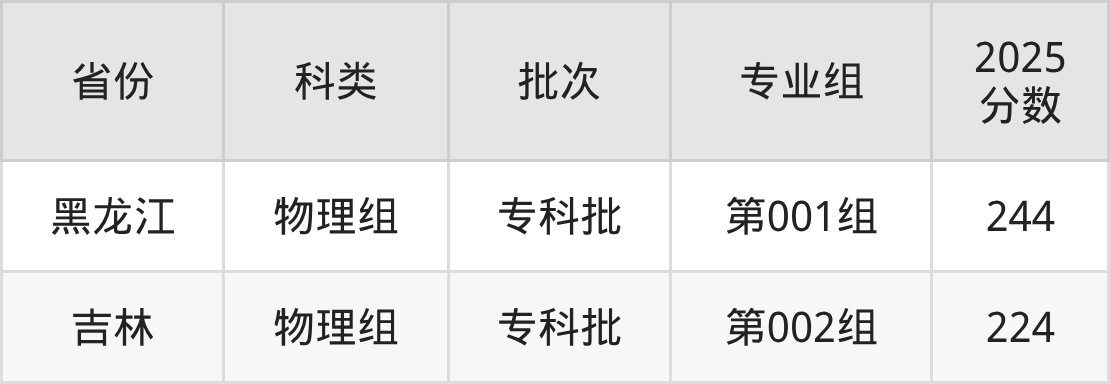 下面是长白山职业技术学院2025年在全国各省的录取分数线一览表,供参考: