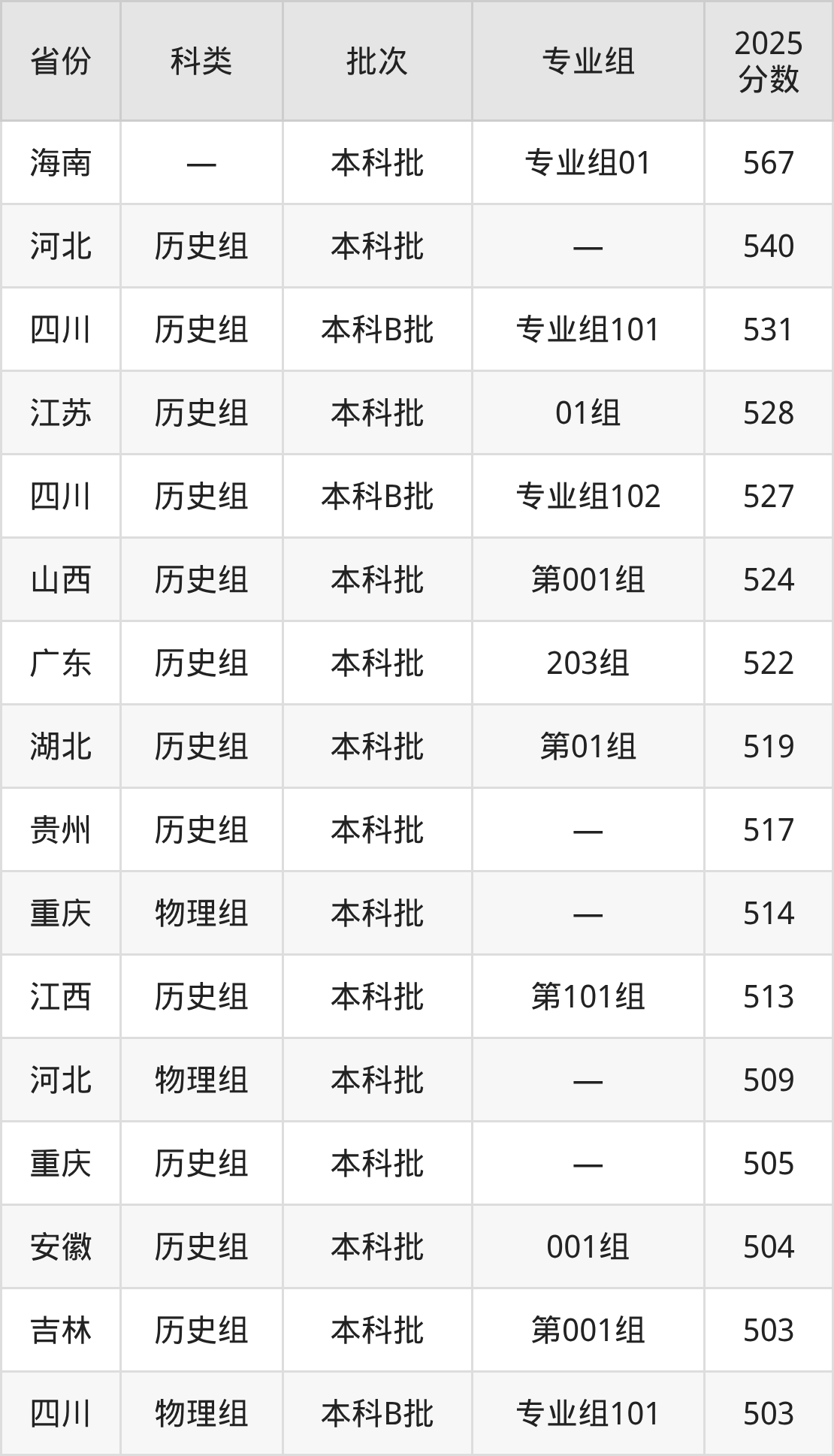而海南地区考生的分数门槛最高,2025年兰州文理学院专业组01在海南招生最低分为567分,考生至少要超本科线87分才有可能被录取。