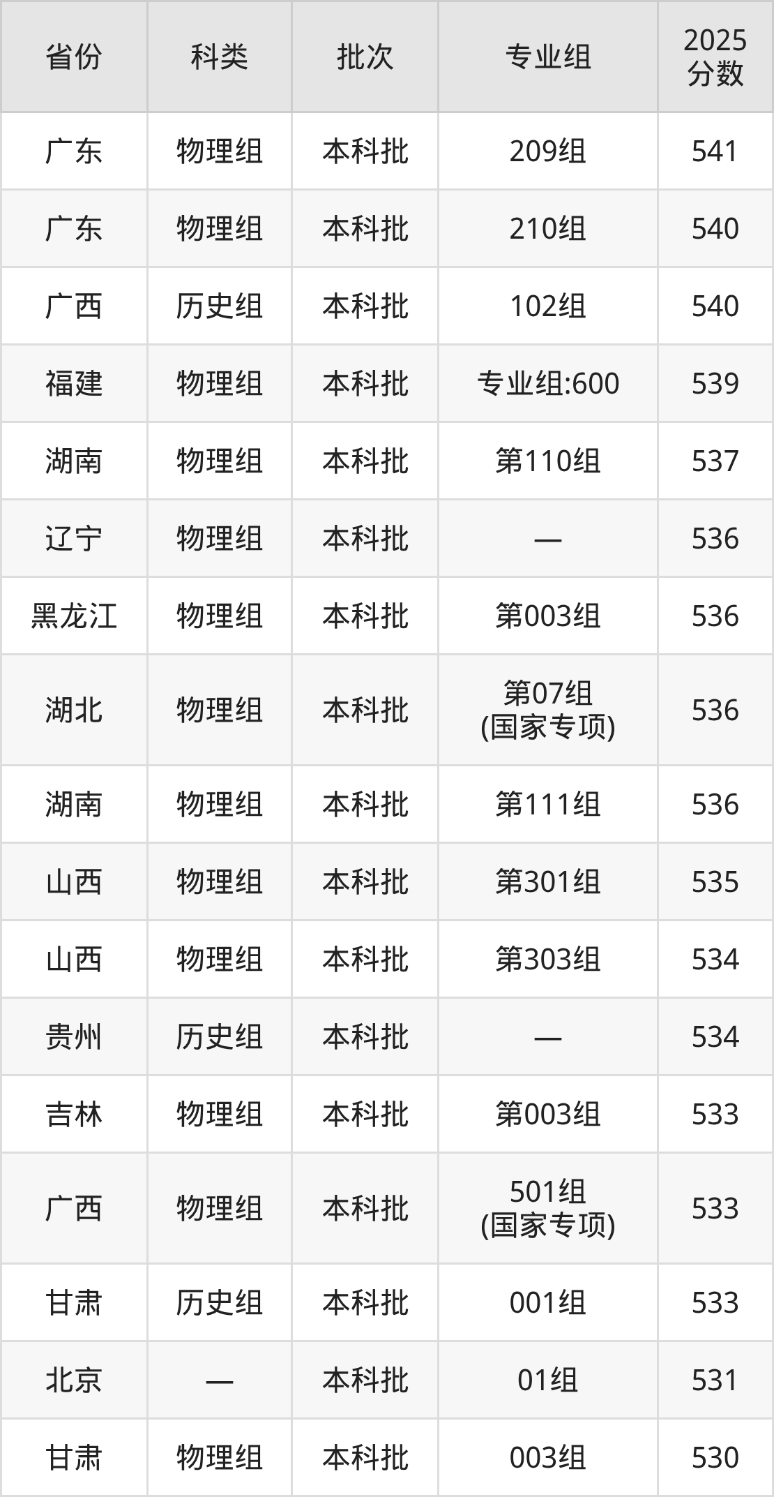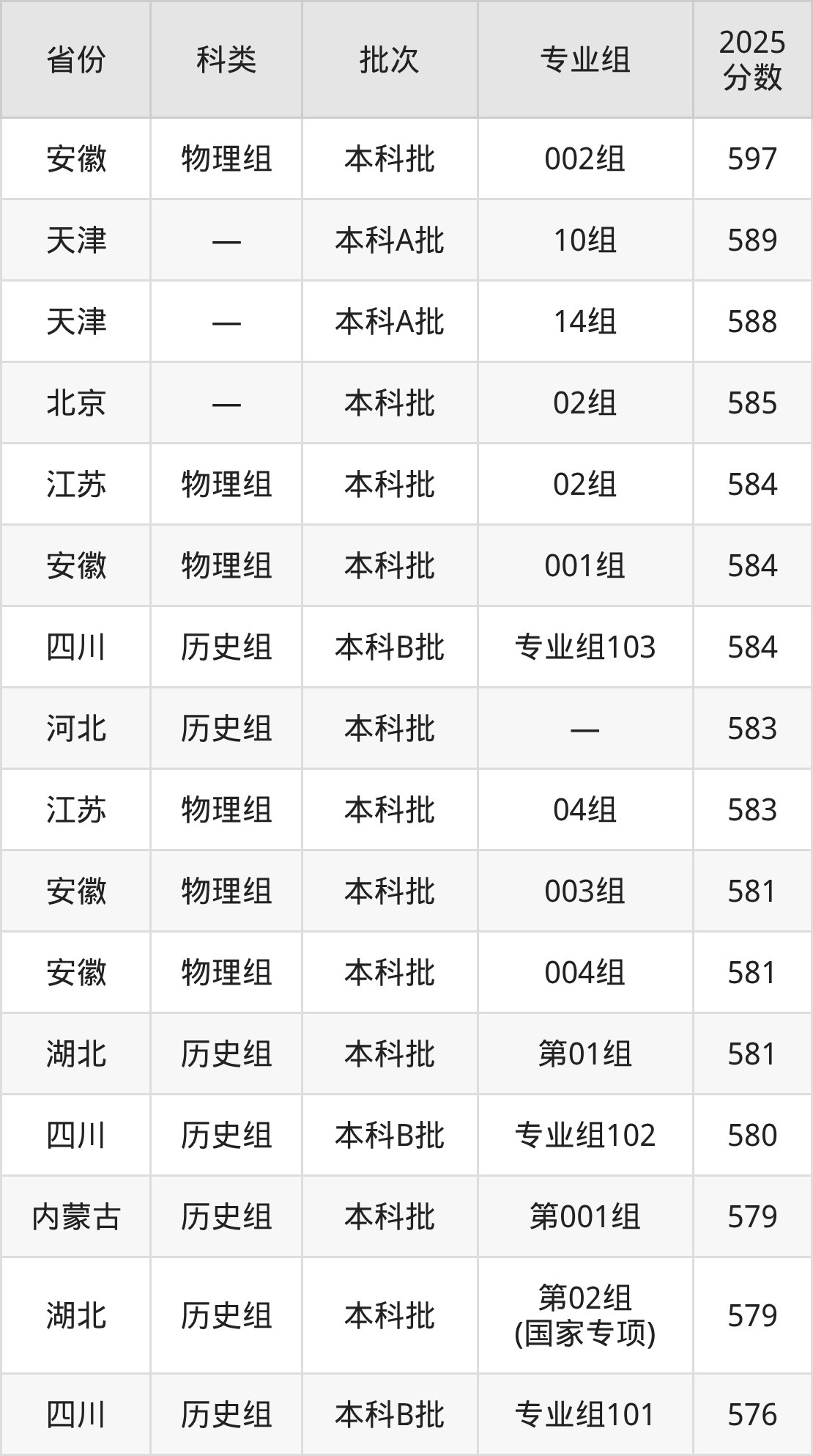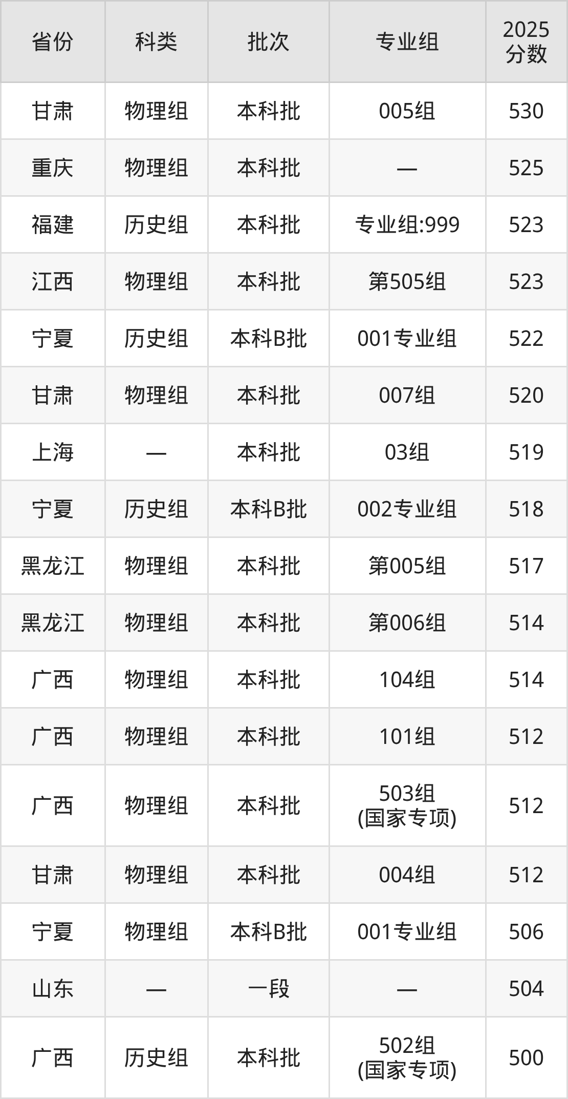而安徽地区物理组考生的分数门槛最高,2025年青岛大学002组在安徽招生最低分为597分,考生至少要超本科线136分才有可能被录取。