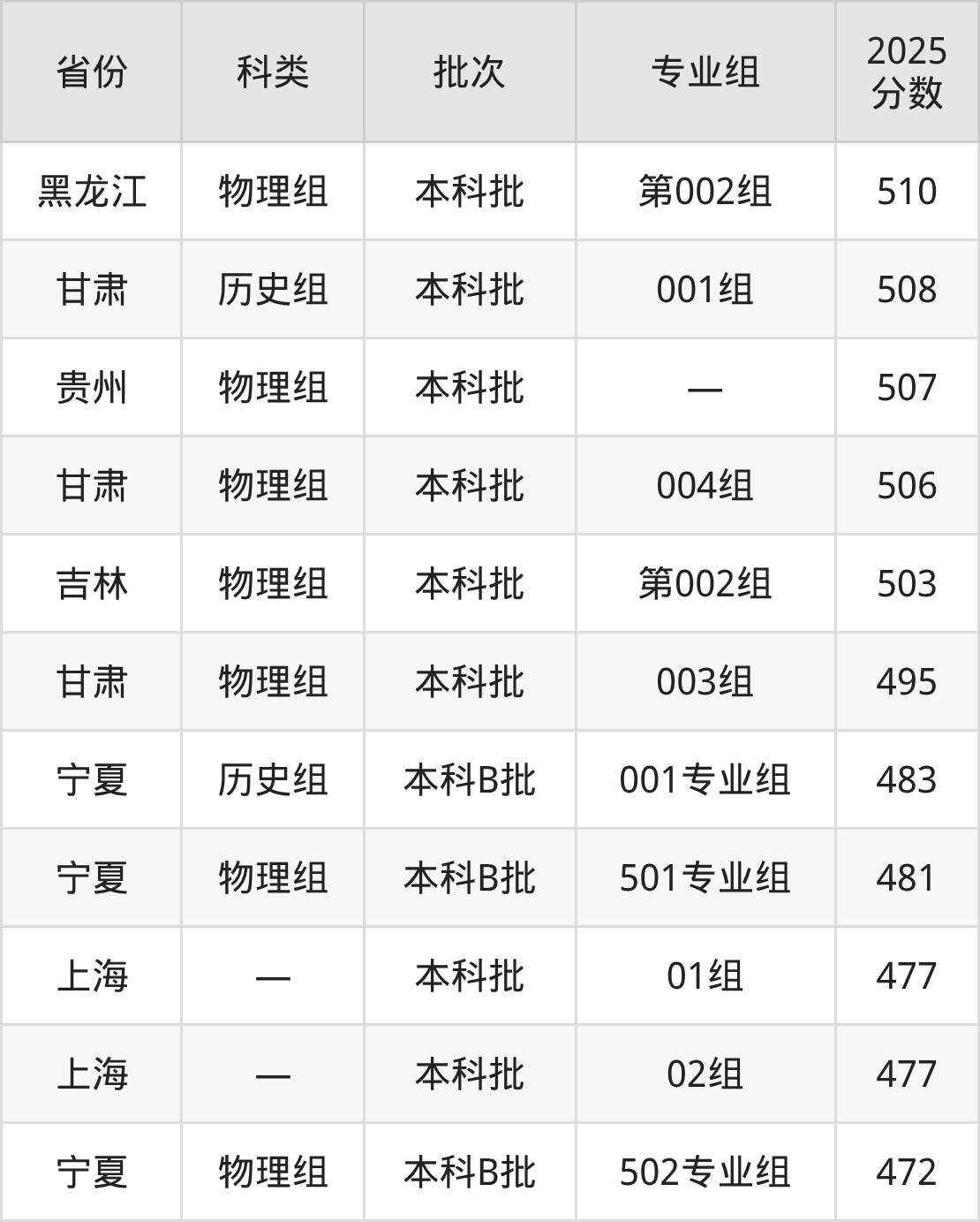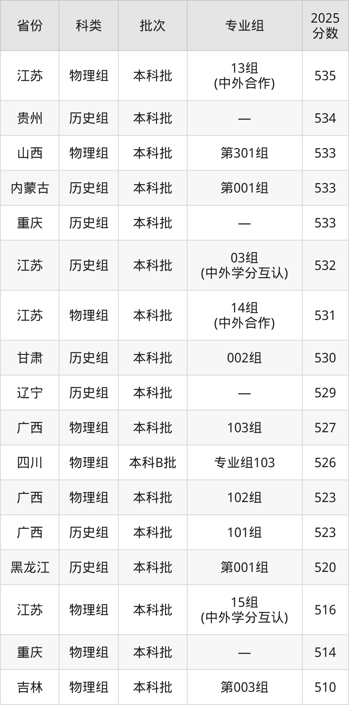 2025年常州大学在全国普通批次招生的录取分数范围位于472~617分之间,其中省内分数范围为516分~572分,物理组最低分专业组为“15组(中外学分互认)”,考生516分即可报考,历史组最低分专业组为“03组(中外学分互认)”,考生532分即可报考。