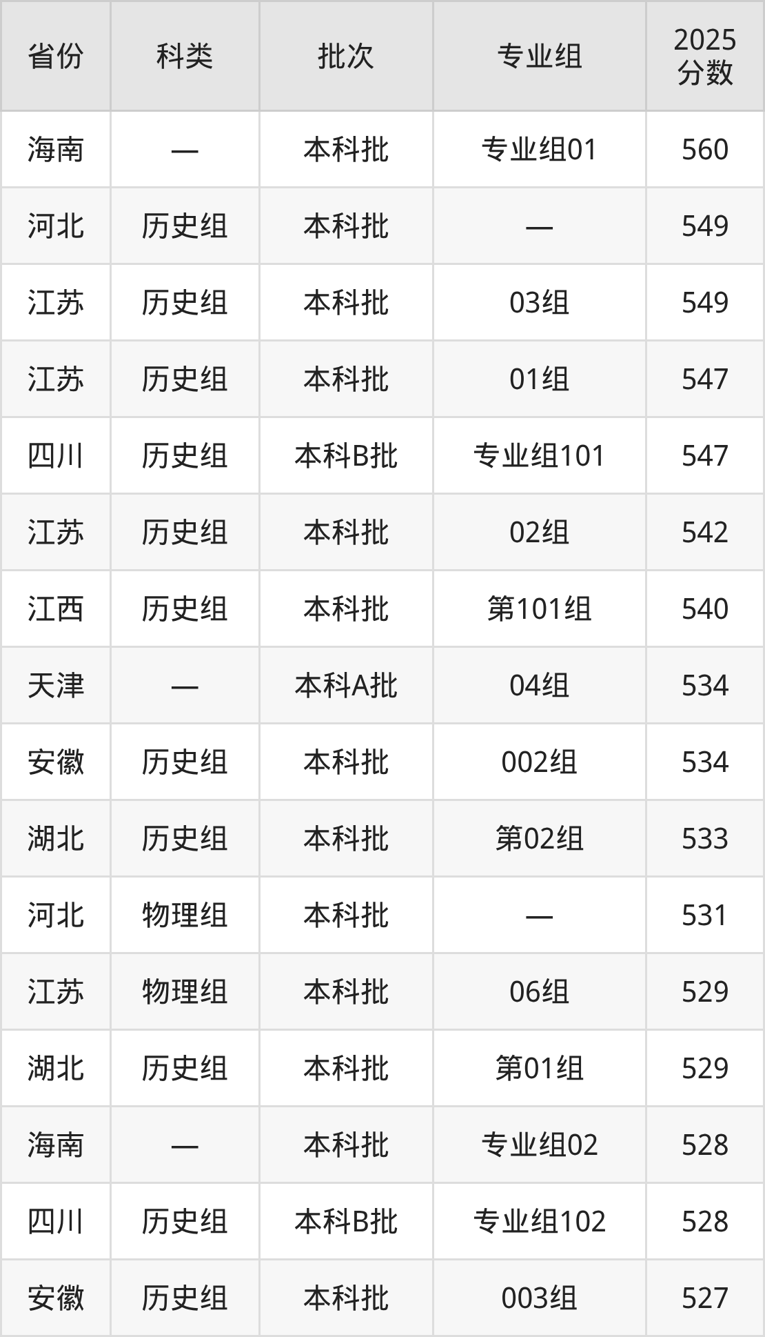 而海南地区考生的分数门槛最高,2025年信阳师范大学专业组01在海南招生最低分为560分,考生至少要超本科线80分才有可能被录取。