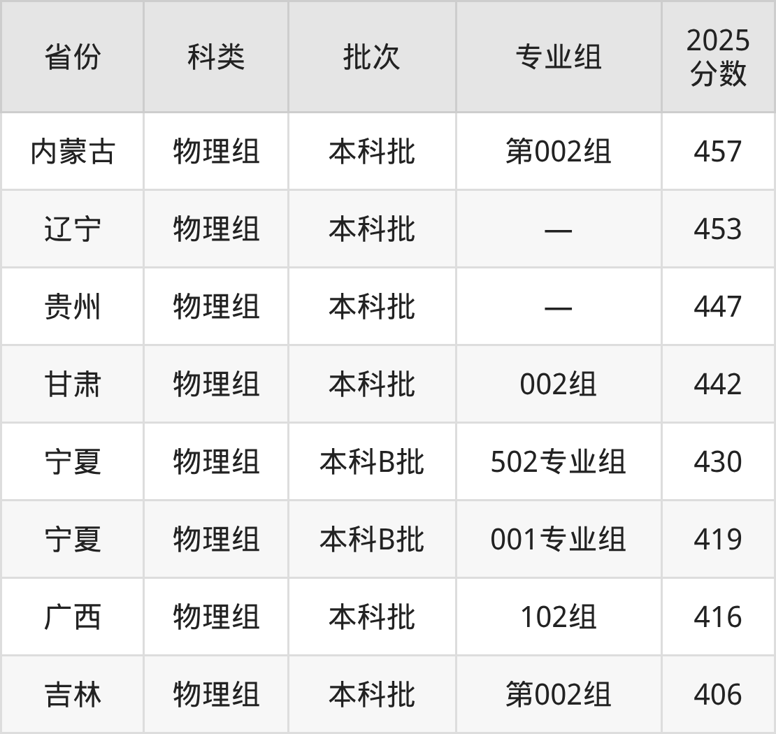 信阳师范大学在省外招生的最低分为406分,其中吉林地区物理组考生上信阳师范大学的分数门槛最低,考生成绩超本科线66分(406分)可上。其次是广西物理组考生,上信阳师范大学至少要超本科线46分(416分)。