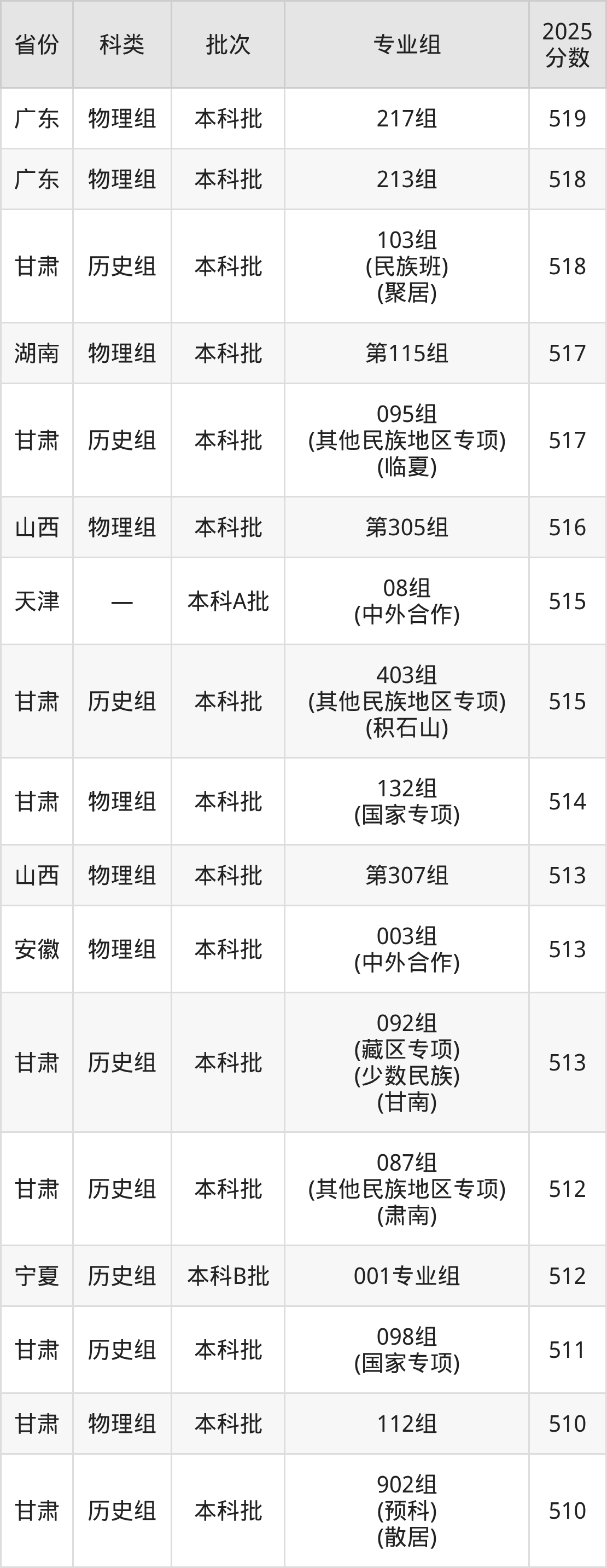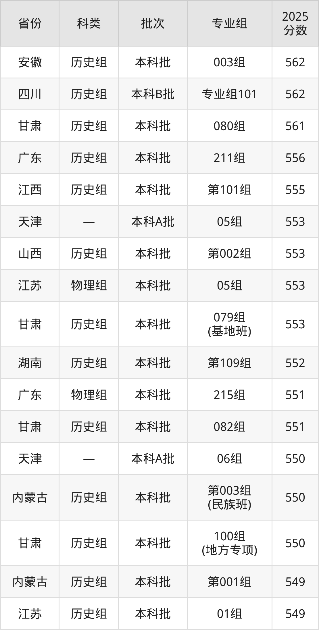 西北师范大学2026年录取分数需在高招结束官方数据公布后更新,2026届有意向报考该校的同学,可以在填报志愿时参考西北师范大学2025年录取分数线: