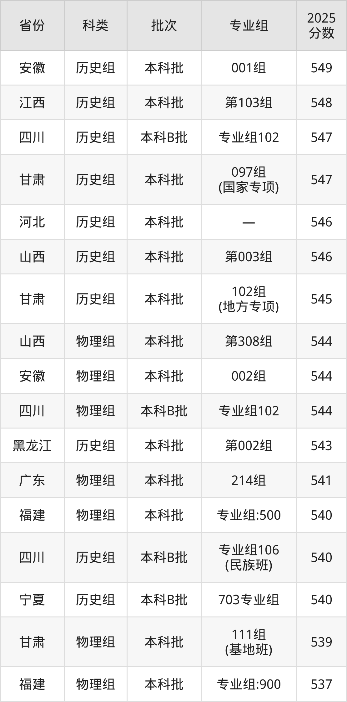 下面是西北师范大学2025年在全国各省的录取分数线一览表,供参考:
