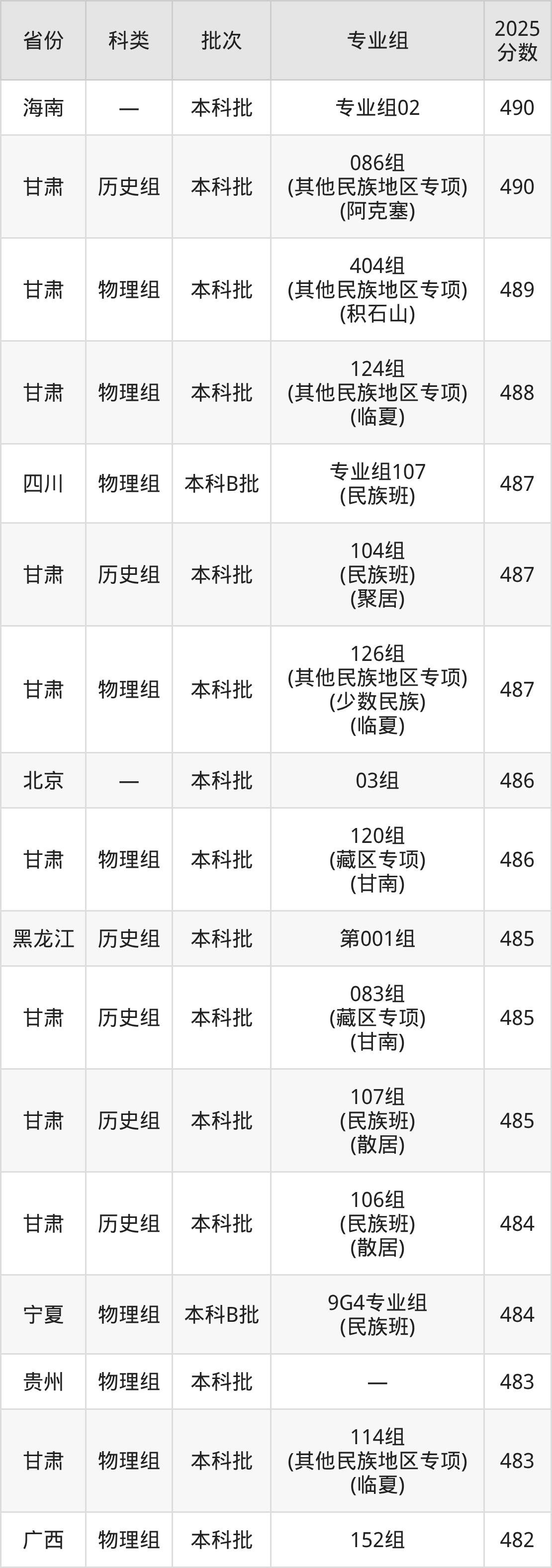 而海南地区考生的分数门槛最高,2025年西北师范大学专业组04在海南招生最低分为638分,考生至少要超本科线158分才有可能被录取。