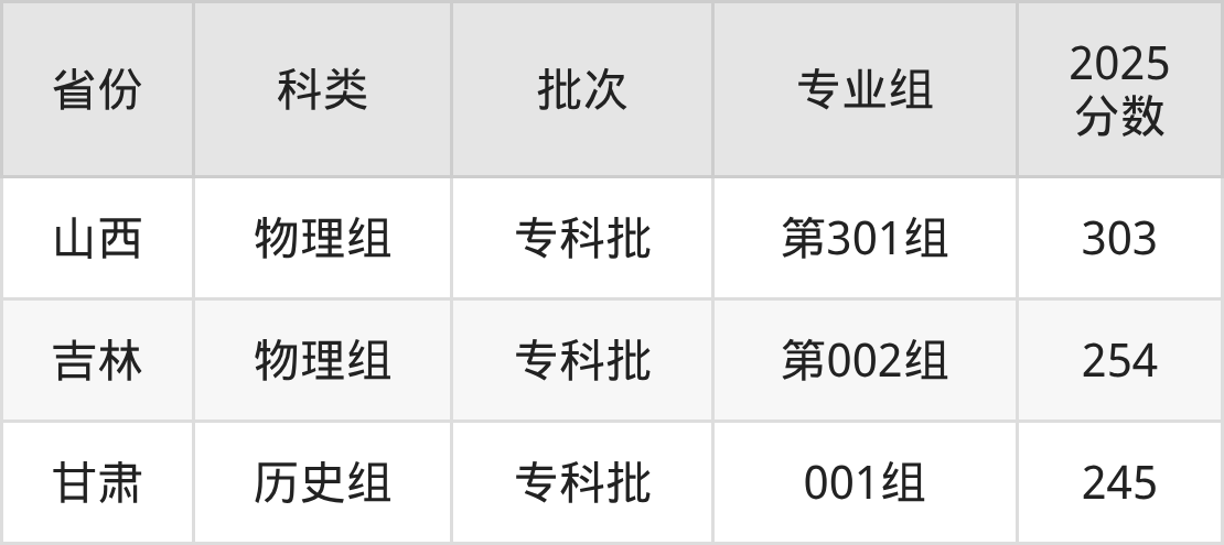 下面是邯郸职业技术学院2025年在全国各省的录取分数线一览表,供参考: