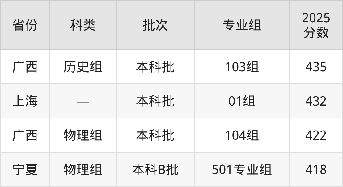 山西大同大学在省外招生的最低分为418分,其次是广西物理组考生,上山西大同大学至少要超本科线52分(422分)。
