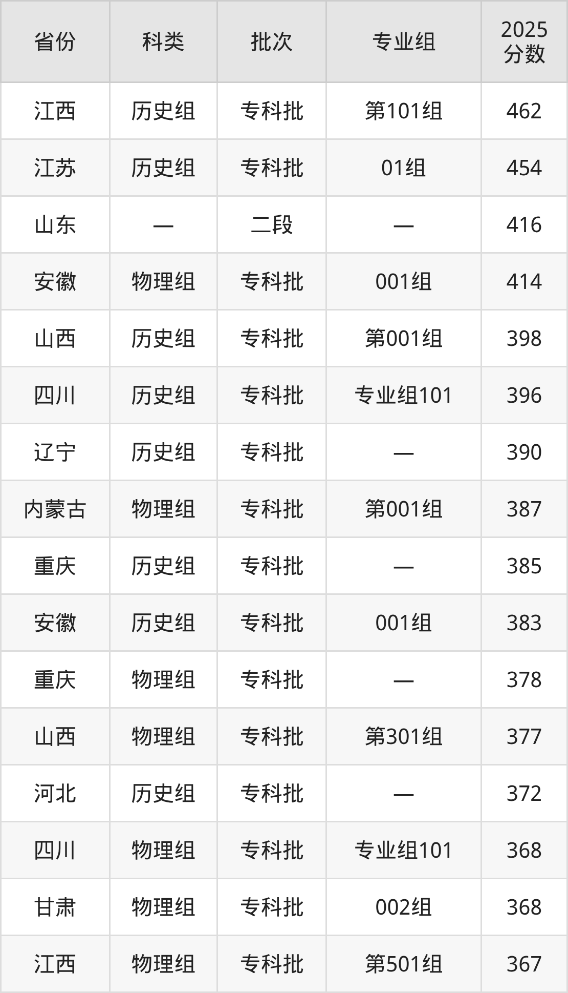 而江西地区历史组考生的分数门槛最高,2025年西安职业技术学院第101组在江西招生最低分为462分,考生至少要超专科线172分才有可能被录取。