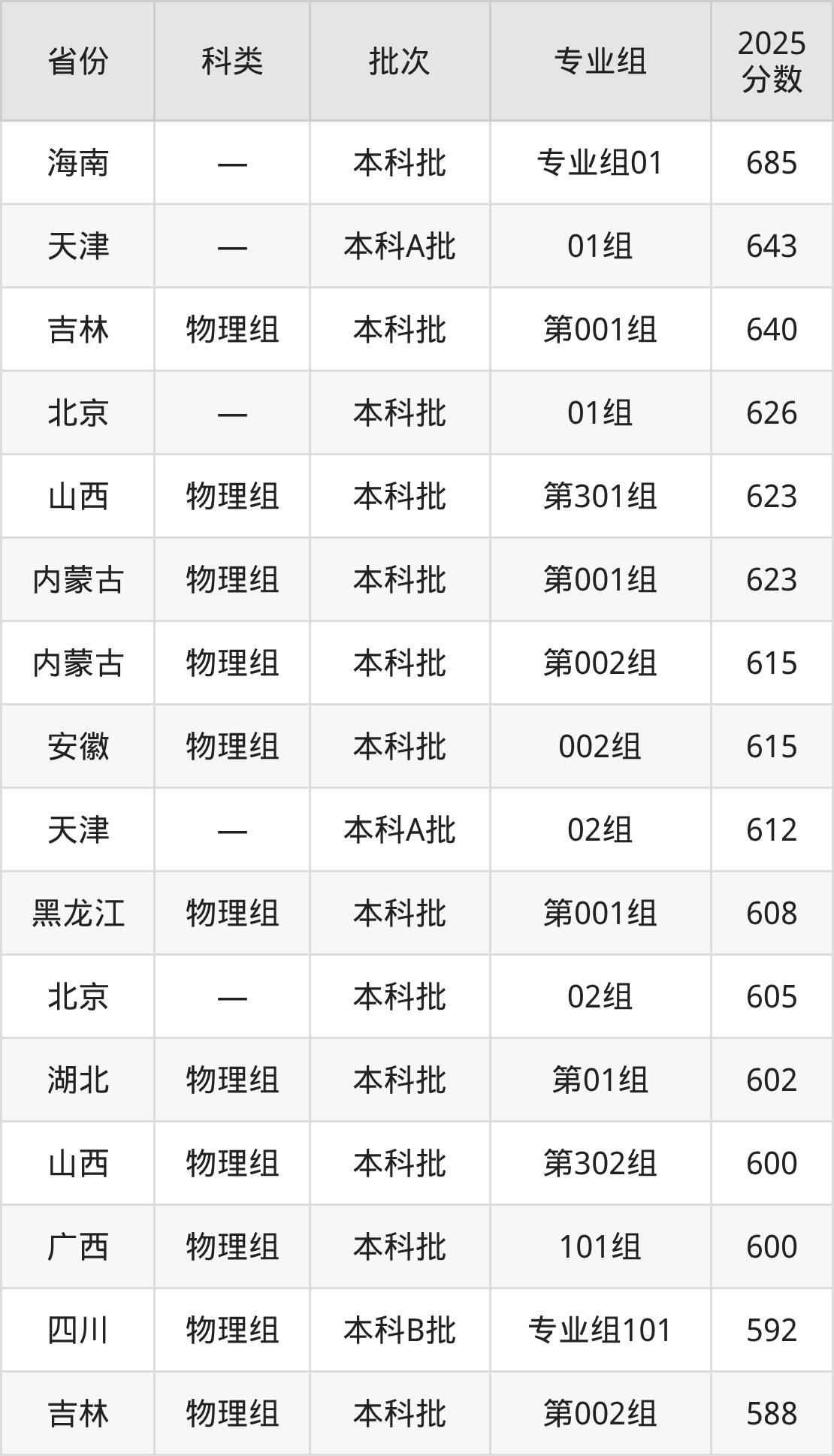 下面是中国医科大学2025年在全国各省的录取分数线一览表,供参考: