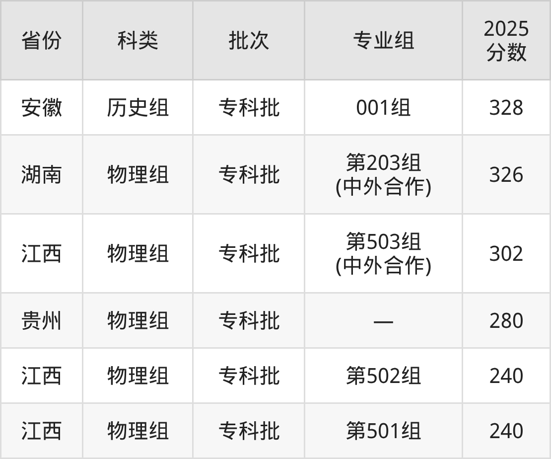 下面是上饶职业技术学院2025年在全国各省的录取分数线一览表,供参考: