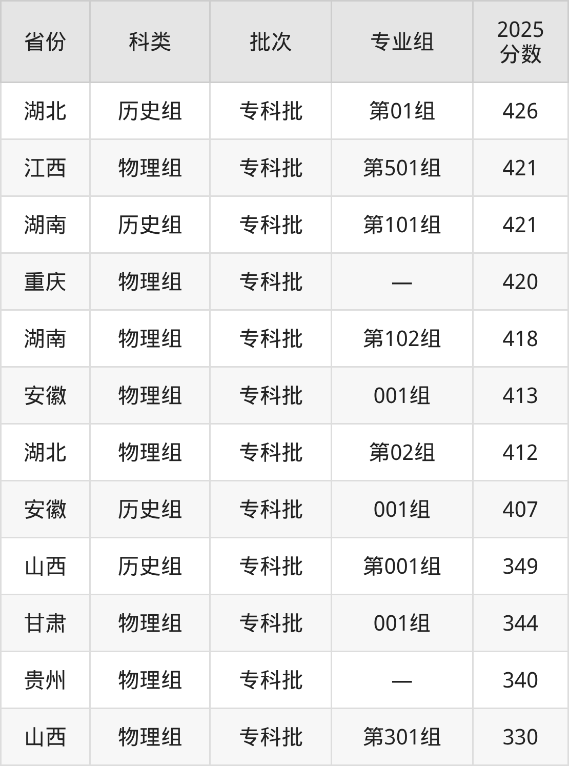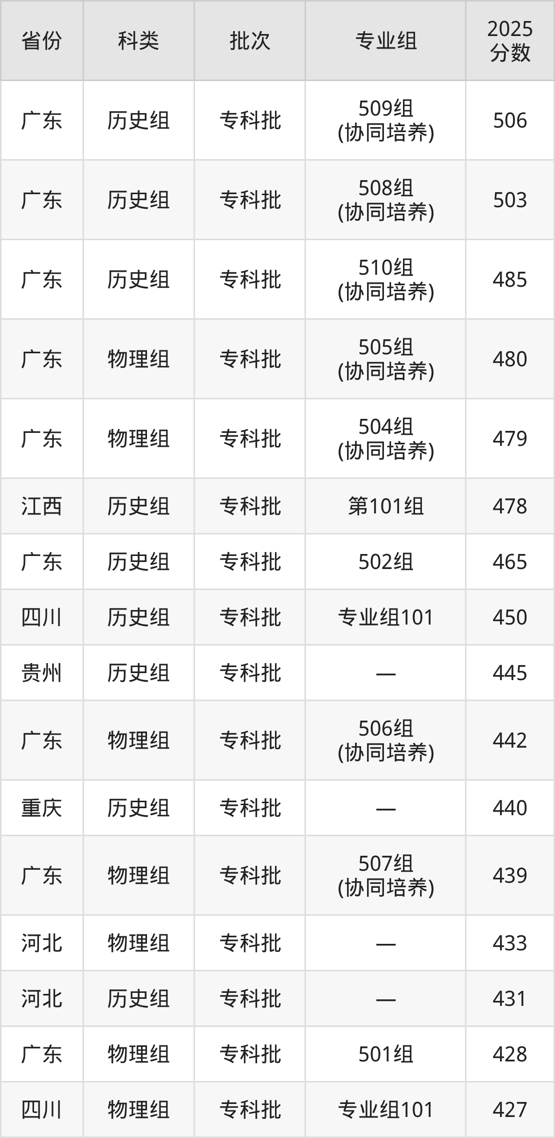 下面是广东工贸职业技术学院2025年在全国各省的录取分数线一览表,供参考: