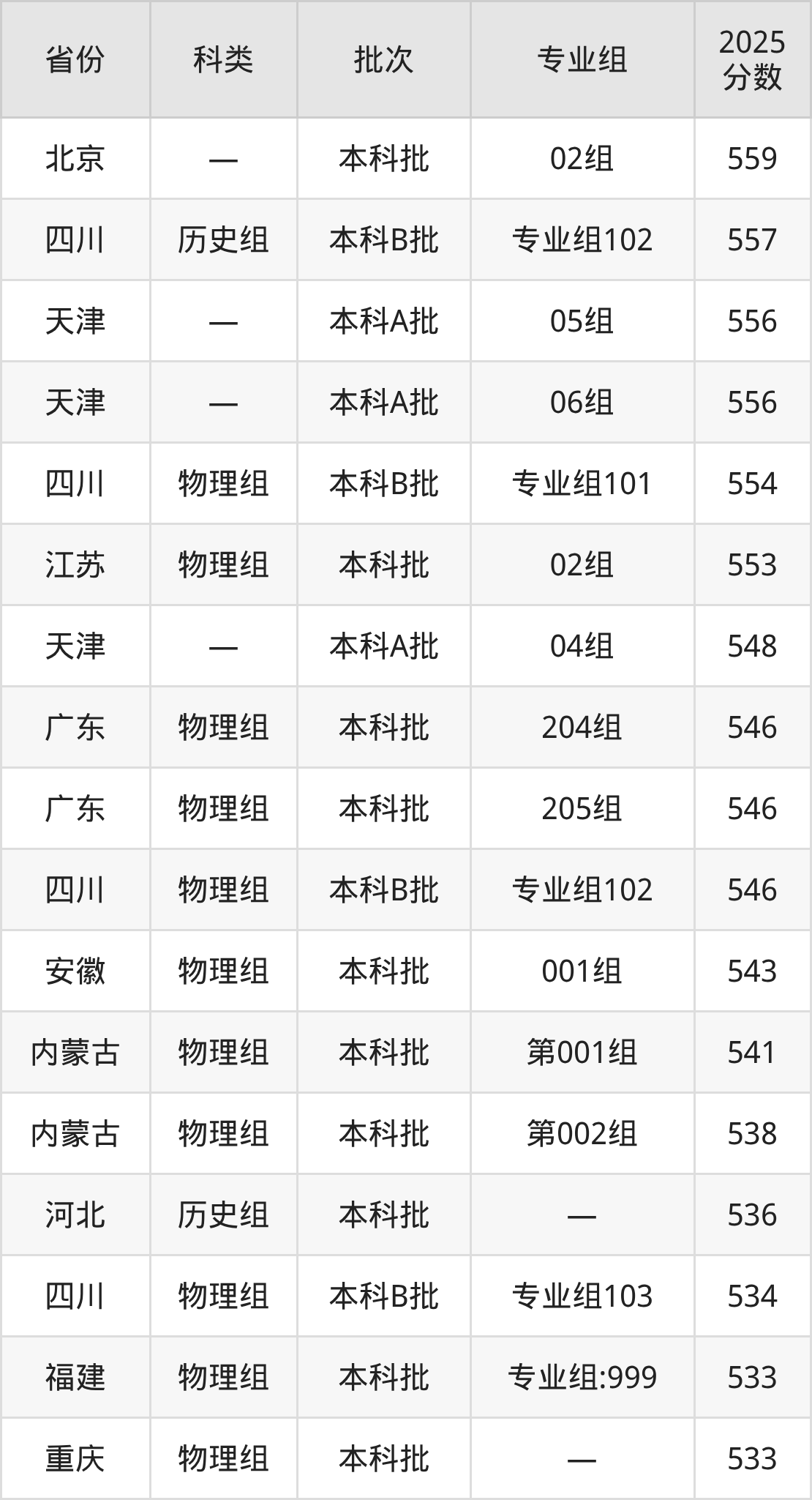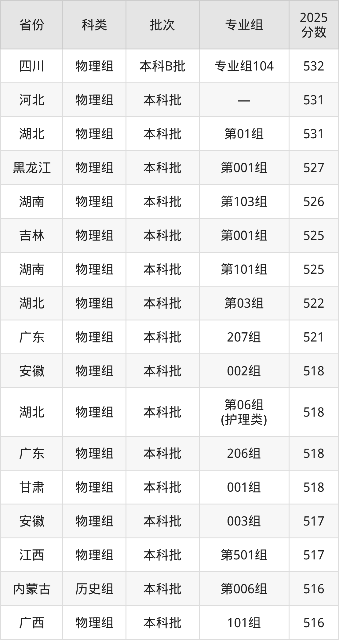下面是河北中医药大学2025年在全国各省的录取分数线一览表,供参考: