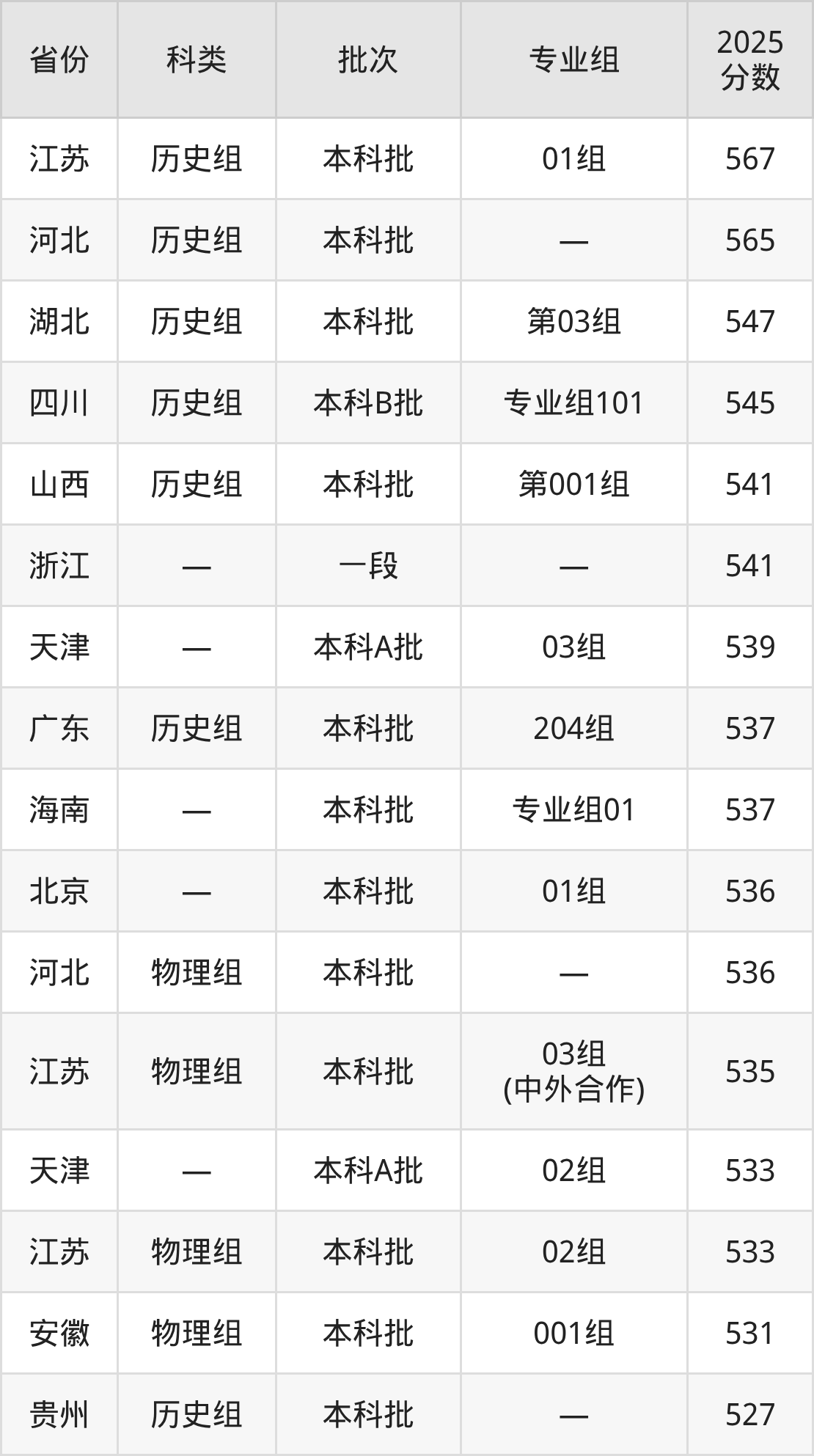 而江苏地区历史组考生的分数门槛最高,2025年山东农业大学01组在江苏招生最低分为567分,考生至少要超本科线85分才有可能被录取。