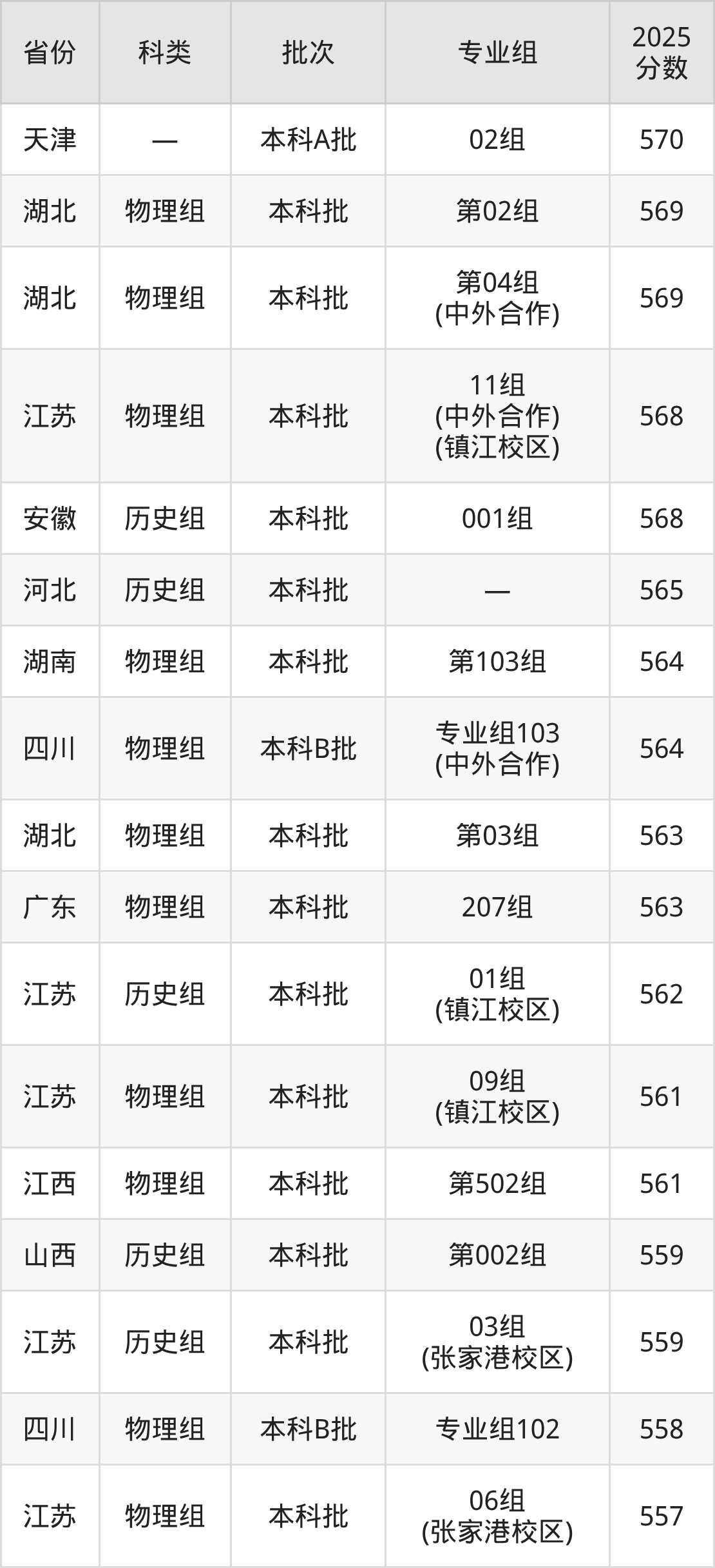 江苏科技大学2026年录取分数需在高招结束官方数据公布后更新,2026届有意向报考该校的同学,可以在填报志愿时参考江苏科技大学2025年录取分数线: