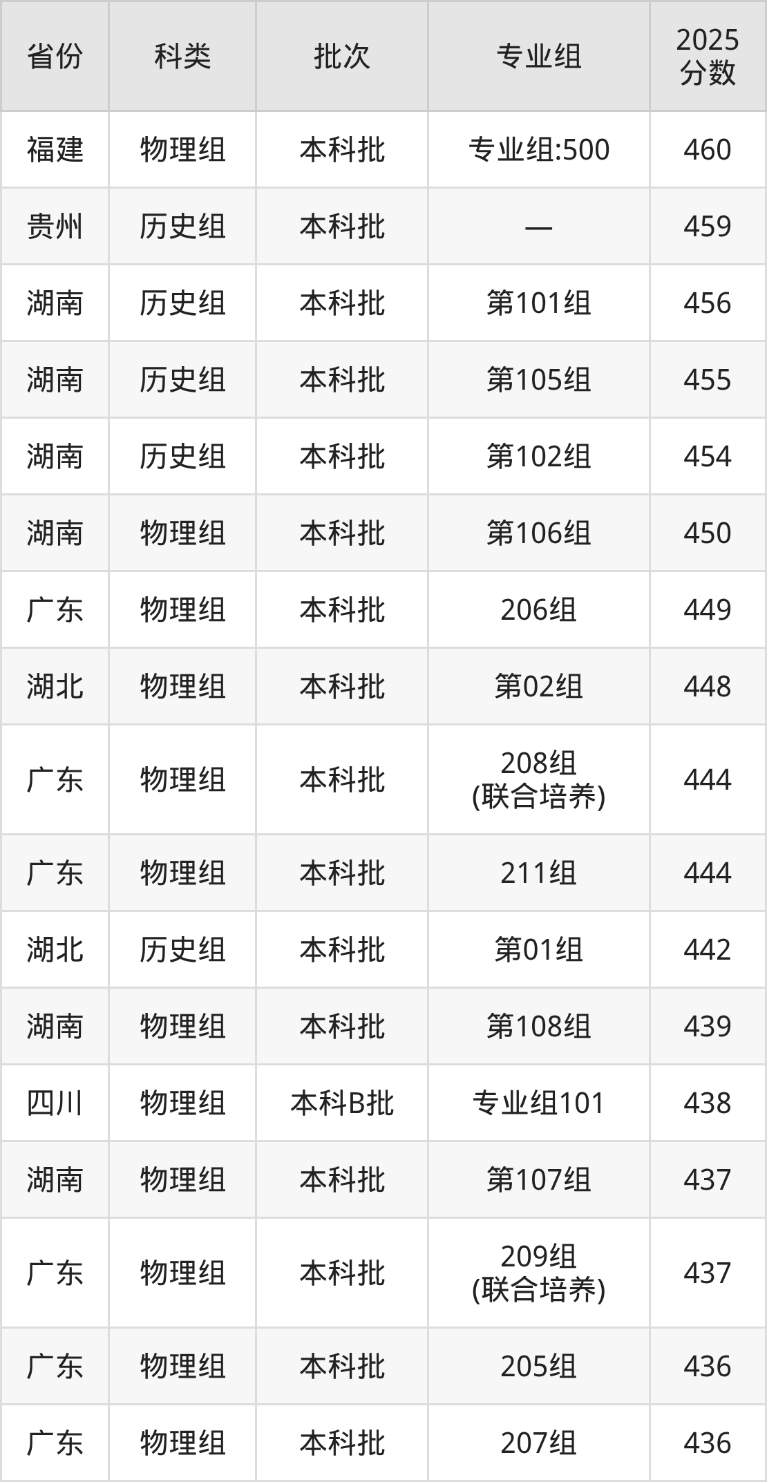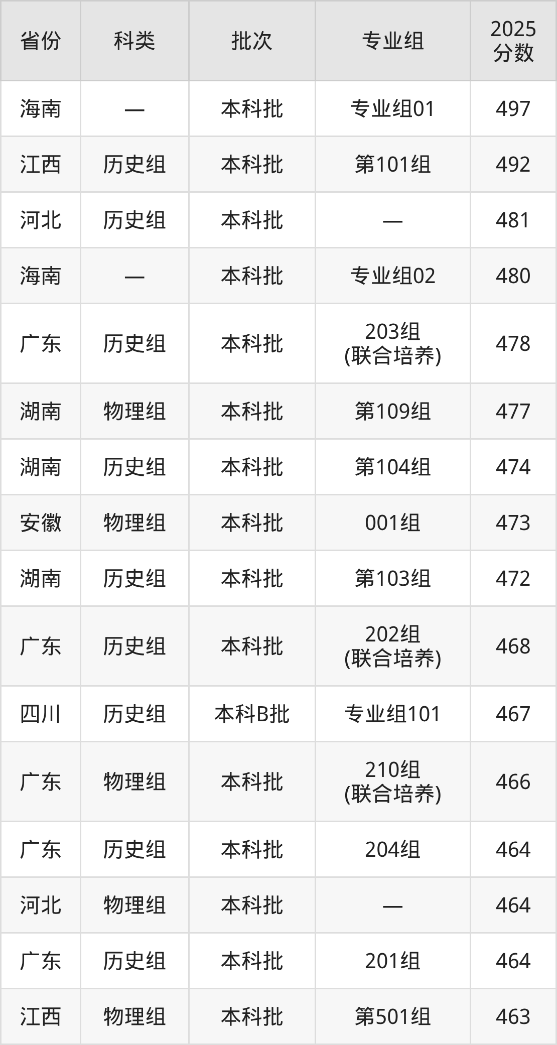 2025年广东科技学院在全国普通批次招生的录取分数范围位于376~497分之间,其中省内分数范围为436分~478分,历史组最低分专业组为“204组”,考生464分即可报考,物理组最低分专业组为“205组”,考生436分即可报考。
