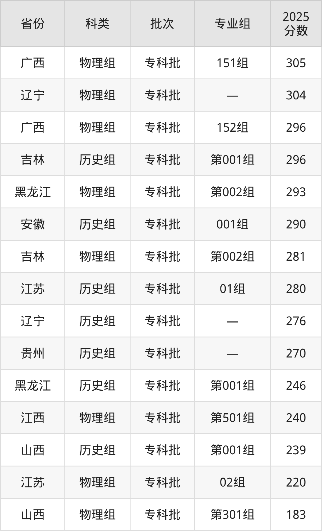 下面是广西物流职业技术学院2025年在全国各省的录取分数线一览表,供参考: