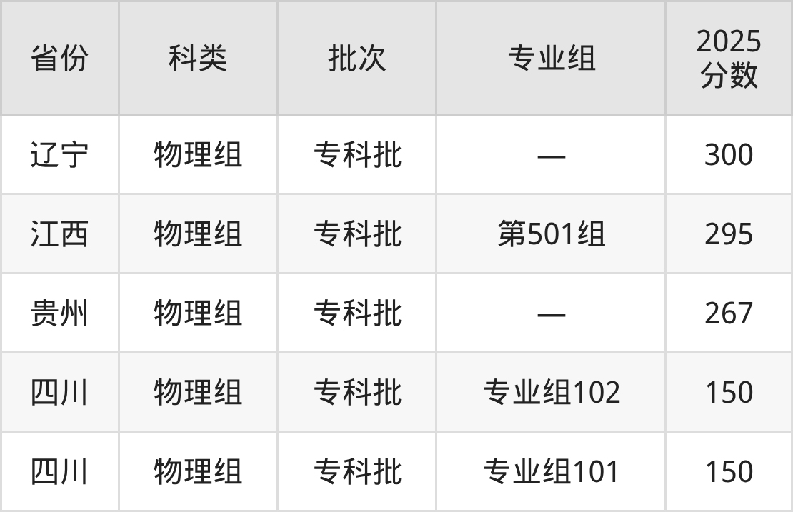 铁岭卫生职业学院在省外招生的最低分为150分,其中四川地区物理组考生上铁岭卫生职业学院的分数门槛最低,考生成绩达专科线即可报考。其次是贵州物理组考生,上铁岭卫生职业学院至少要超专科线87分(267分)。