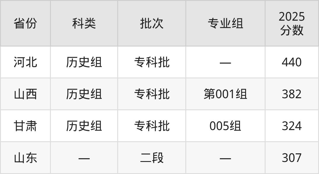 而河北地区历史组考生的分数门槛最高,2025年山东特殊教育职业学院在河北招生最低分为440分,考生至少要超专科线240分才有可能被录取。