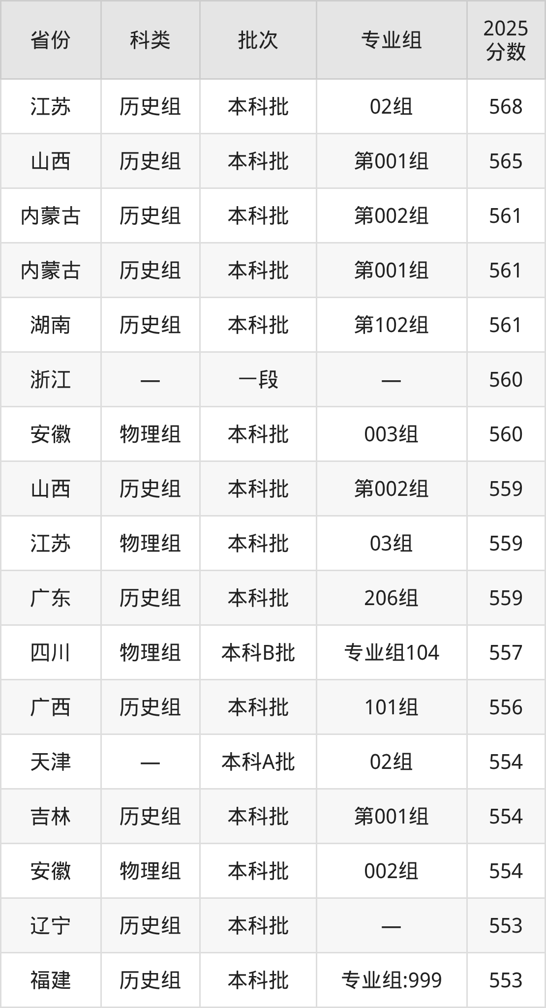下面是浙江农林大学2025年在全国各省的录取分数线一览表,供参考: