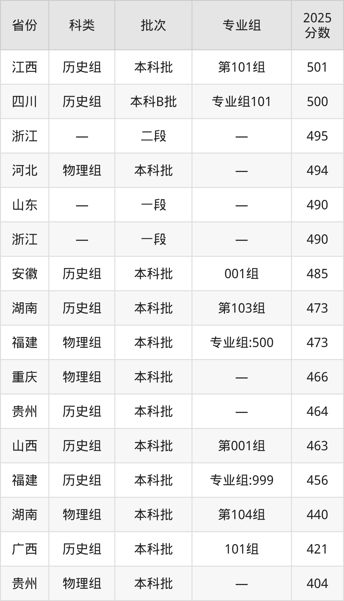 而江西地区历史组考生的分数门槛最高,2025年贵州黔南科技学院第101组在江西招生最低分为501分,考生至少要超本科线15分才有可能被录取。