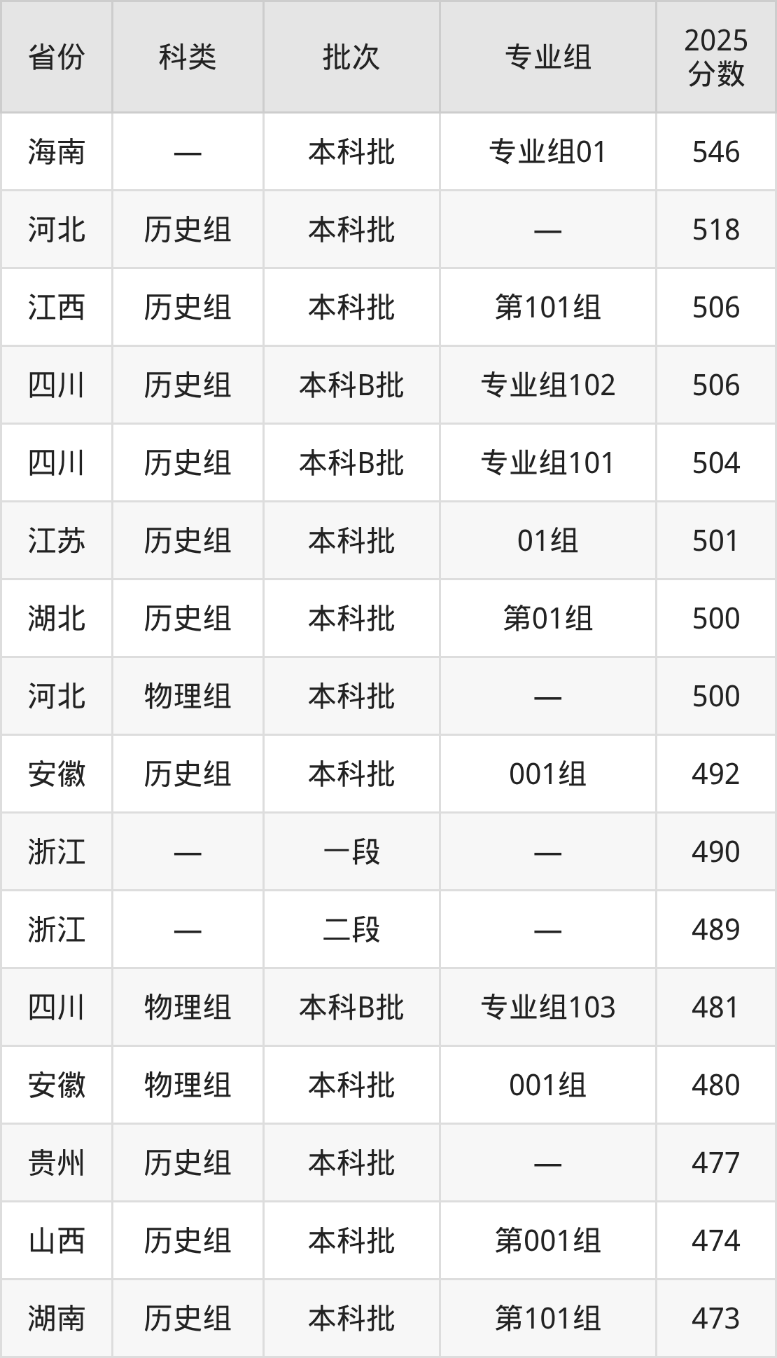 而海南地区考生的分数门槛最高,2025年重庆工商大学派斯学院专业组01在海南招生最低分为546分,考生至少要超本科线66分才有可能被录取。