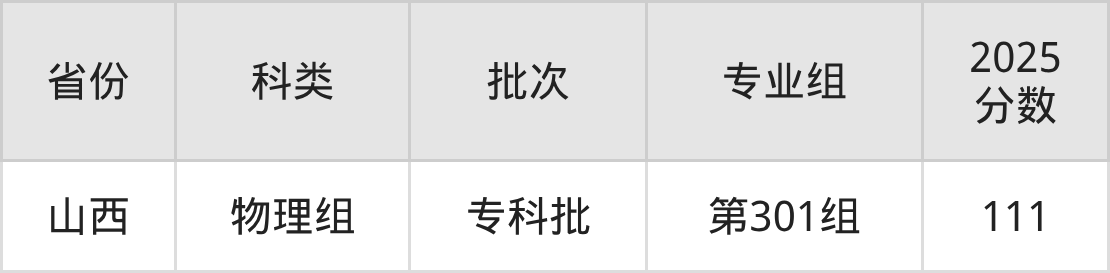 下面是山西同文职业技术学院2025年在全国各省的录取分数线一览表,供参考: