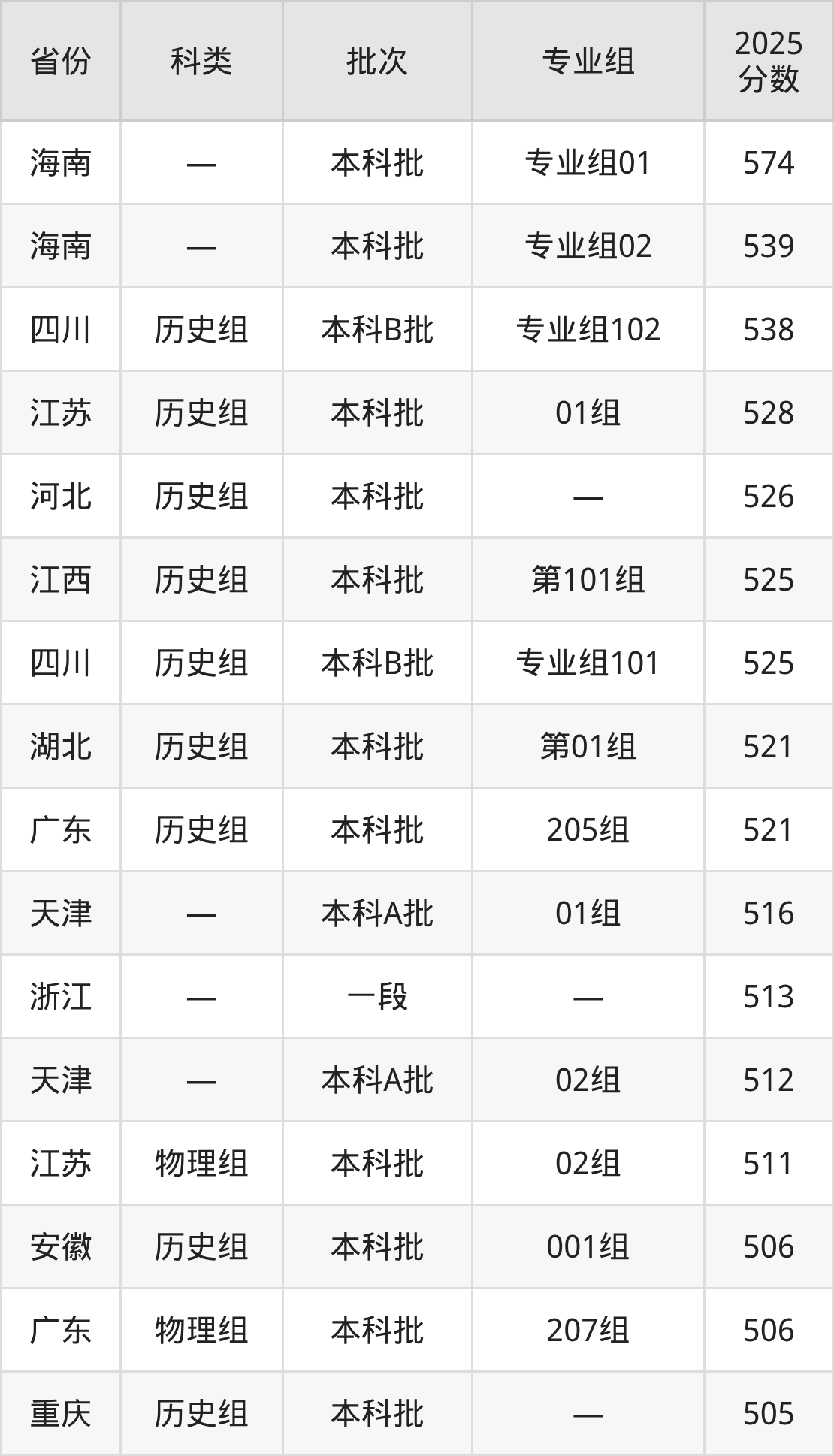 而海南地区考生的分数门槛最高,2025年武夷学院专业组01在海南招生最低分为574分,考生至少要超本科线94分才有可能被录取。