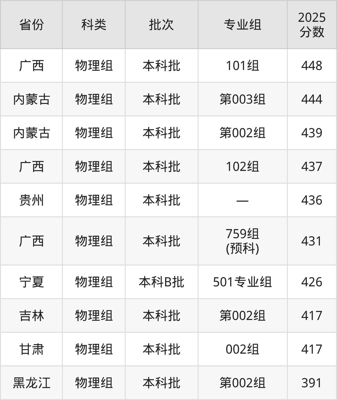 武夷学院在省外招生的最低分为391分,其中黑龙江地区物理组考生上武夷学院的分数门槛最低,考生成绩超本科线31分(391分)可上。其次是甘肃物理组考生,上武夷学院至少要超本科线43分(417分)。