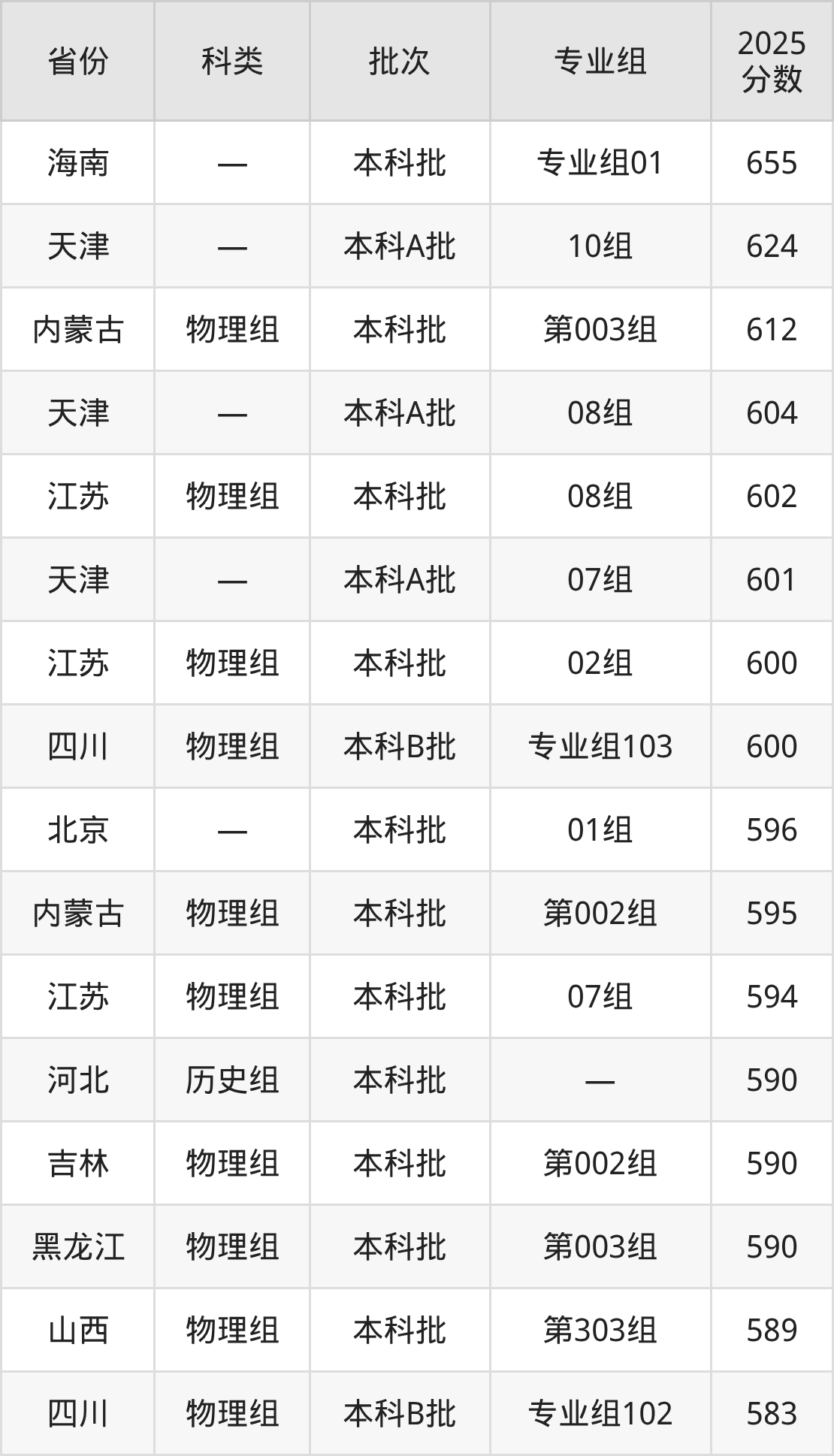 而海南地区考生的分数门槛最高,2025年天津中医药大学专业组01在海南招生最低分为655分,考生至少要超本科线175分才有可能被录取。