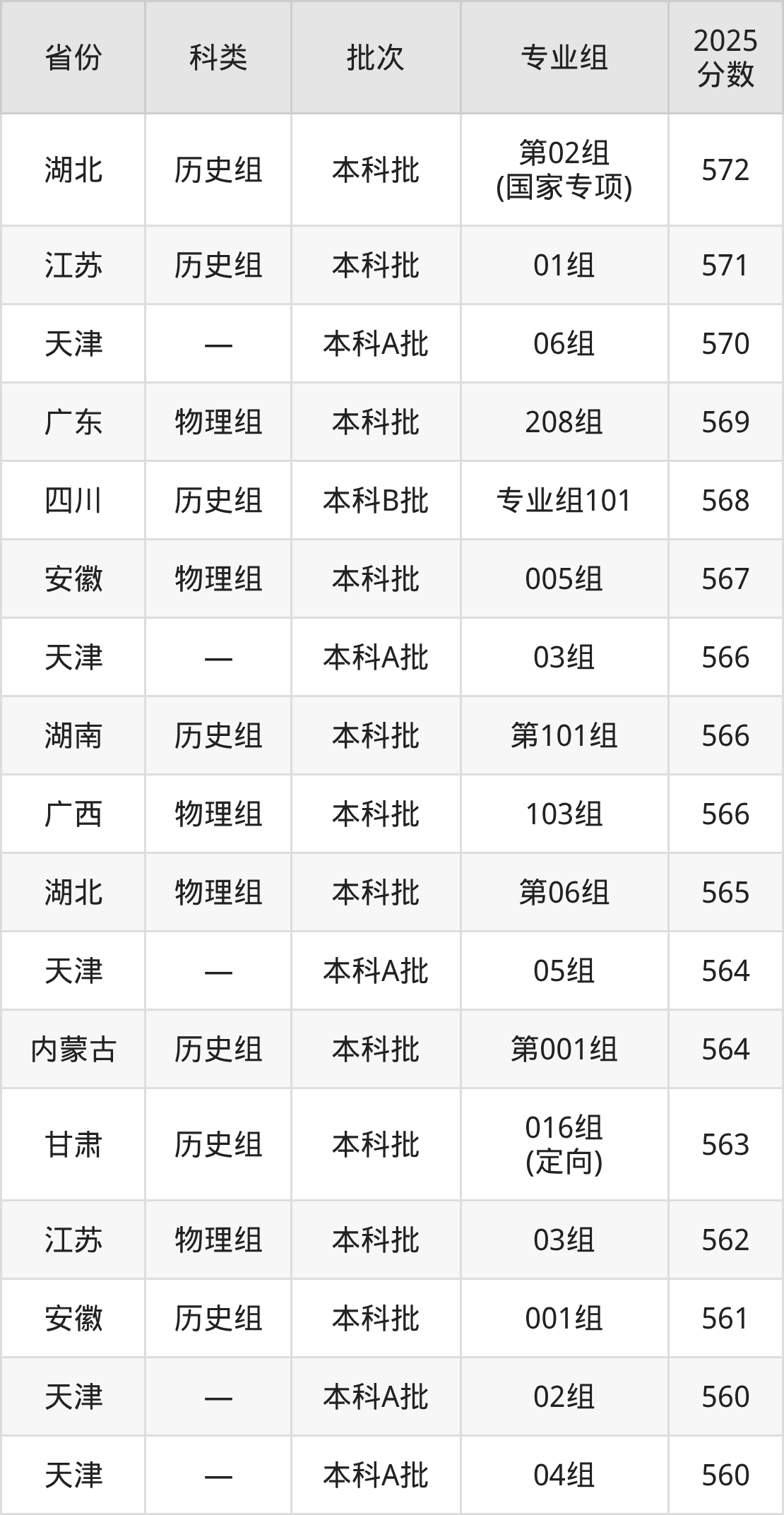 下面是天津中医药大学2025年在全国各省的录取分数线一览表,供参考: