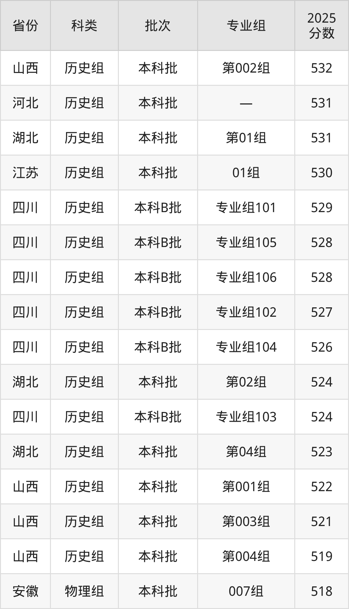 而山西地区历史组考生的分数门槛最高,2025年山东女子学院第002组在山西招生最低分为532分,考生至少要超本科线89分才有可能被录取。